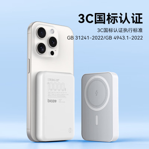 【叠6元首单礼金,到手53元~超划算!!】毕亚兹磁吸无线充电宝1W毫安适用苹果12-17全系,3C国标认证!可上飞机!【云朵白】Magsafe磁吸♥适用iPhone12-17全系♥轻盈好手感,15W苹