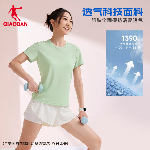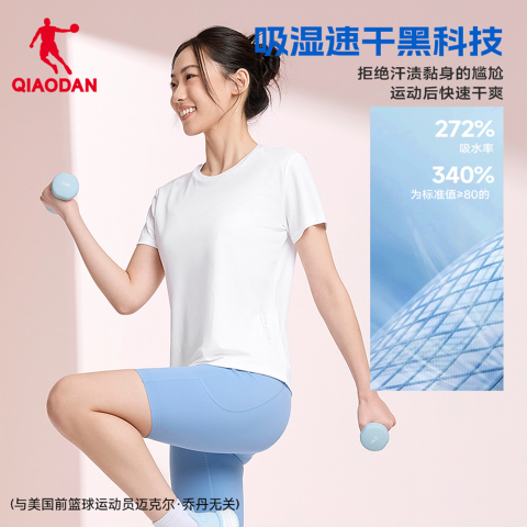 乔丹速干短袖T恤女士2026夏季新款透气瑜伽跑步健身训练吸湿上衣 【叠4.92淘金币】【3首单礼金】!!