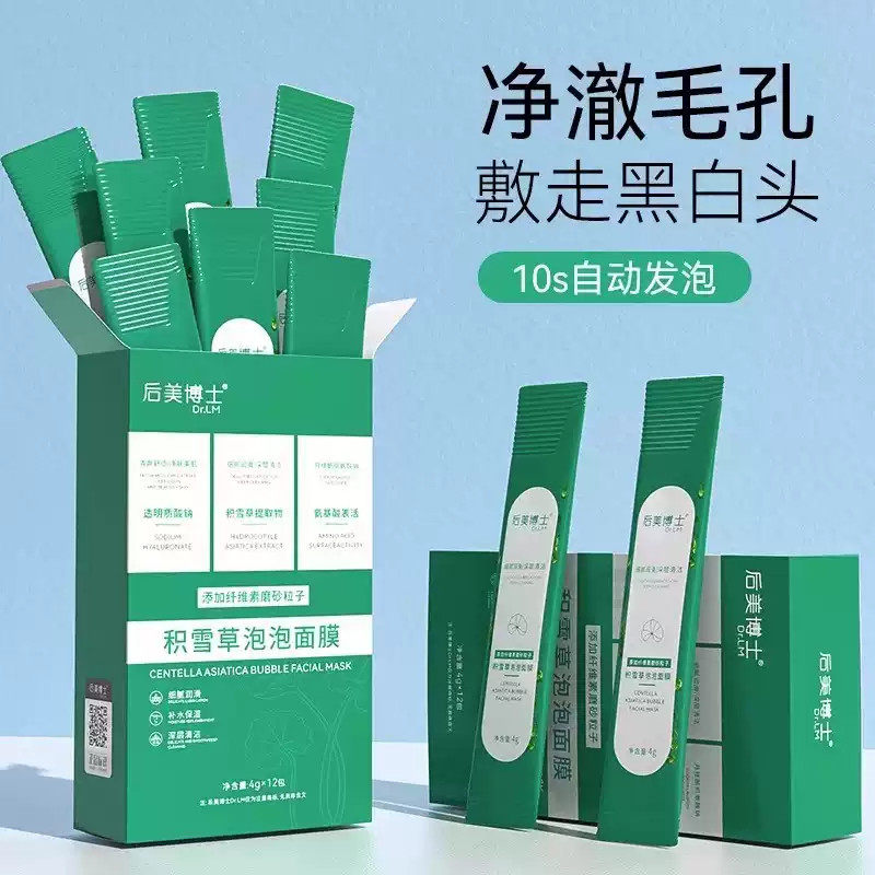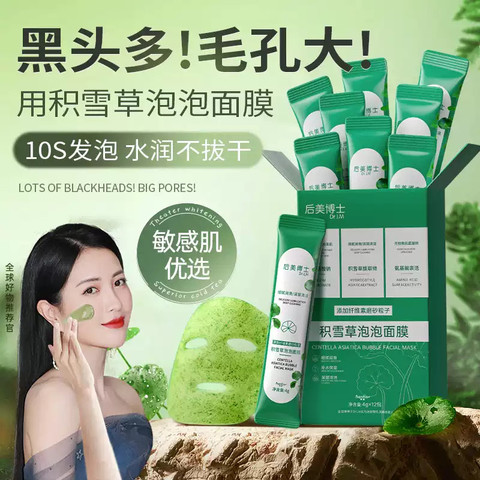 积雪草泡泡面膜,深层清洁毛孔,有效去除粉刺黑头,12支装便携好用,清爽不紧绷,肌肤焕亮更细腻!