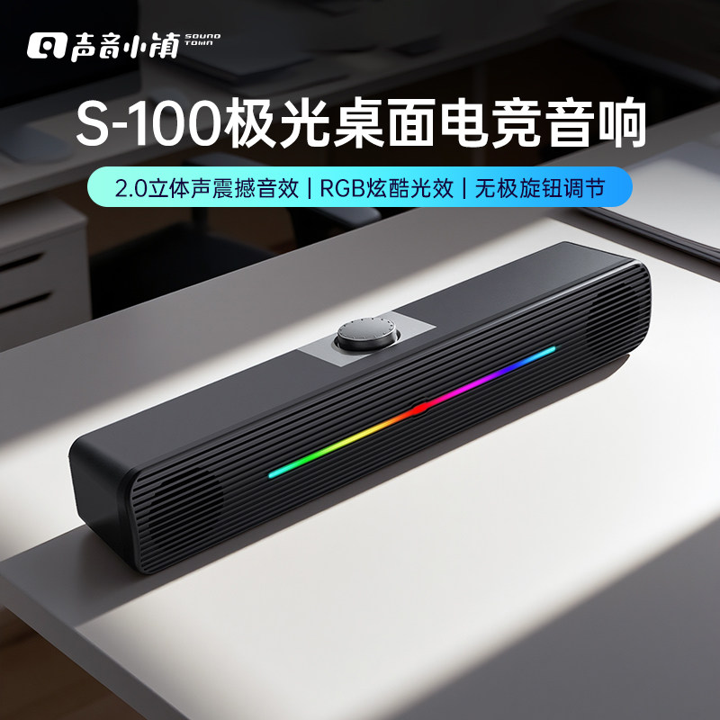 声音小镇极光音箱来啦!蓝牙+USB双连接,电竞光效随节奏律动,立体声拉满游戏沉浸感!桌面颜值担当,听歌开黑都超炸,谁用谁香!【赠运费险】