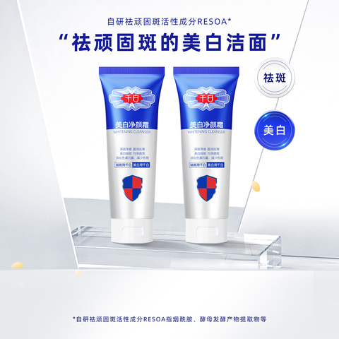 千白美白净颜霜洗面奶100g,温和清洁不紧绷,净颜洁面乳控油去黑头,敏感肌也适用!日常护肤好搭档,洁净又养肤!