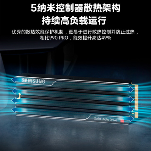 三星9100 PRO散热片版4TB NVMe PCIe 5.0 M.2固态硬盘,高速稳定,游戏加载快人一步!大容量满足多任务需求,性能强劲,提升电脑整体体验!