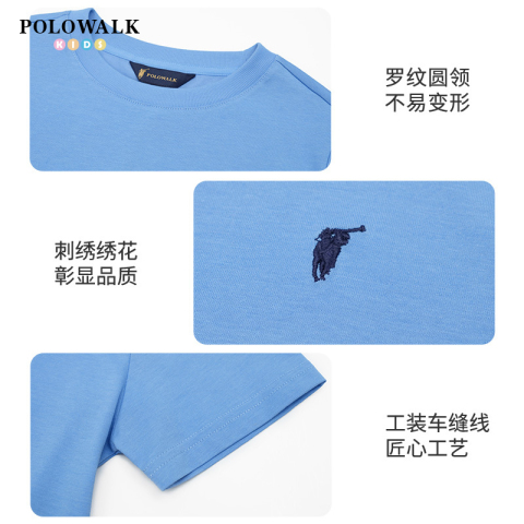 【3A抗菌】POLOWALK童装2026夏季新品男童短袖T恤圆领套头衫速干