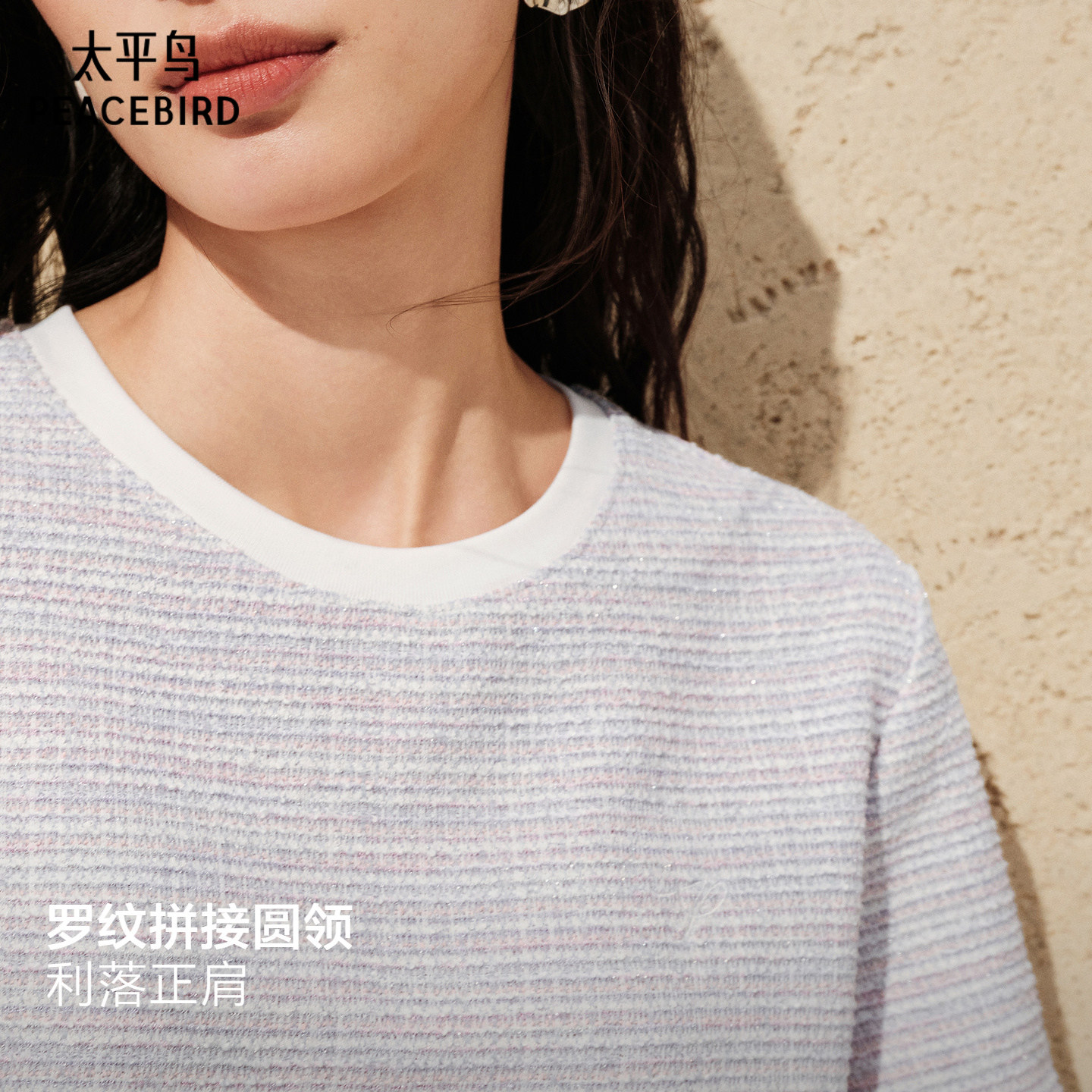 太平鸟爆款升级小香风短袖T恤26夏新洋气宽松圆领撞色针织衫上衣