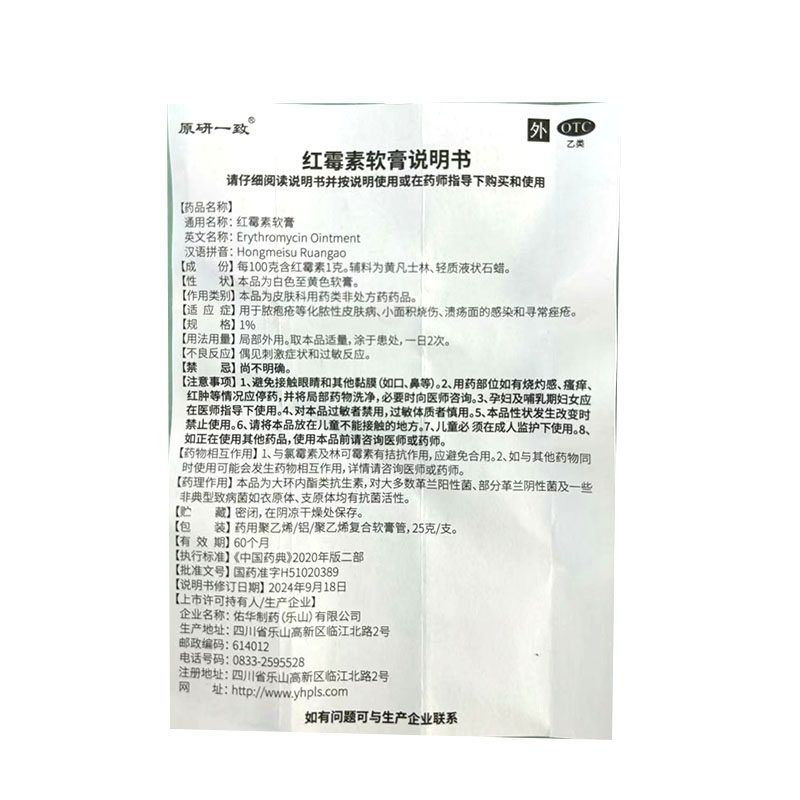 [原研一致] 红霉素软膏 1%*25g/盒(25g大规格)