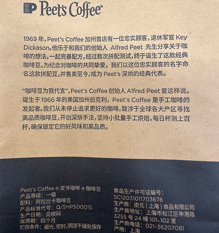 PeetsCoffee皮爷家常精品咖啡豆250g*2袋,单袋仅64元,手工新鲜深烘,醇香浓郁,手磨口感更佳!现磨现冲,享受高品质咖啡体验!