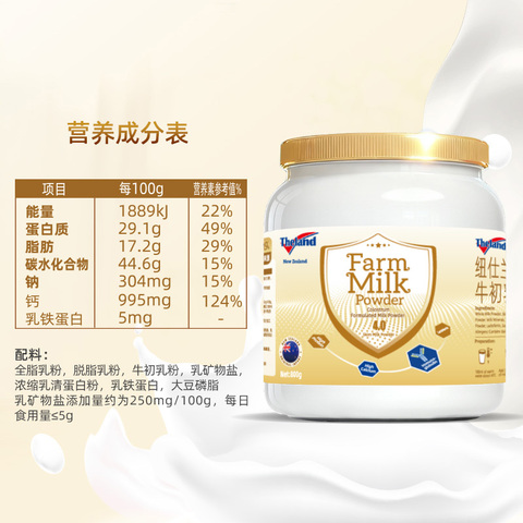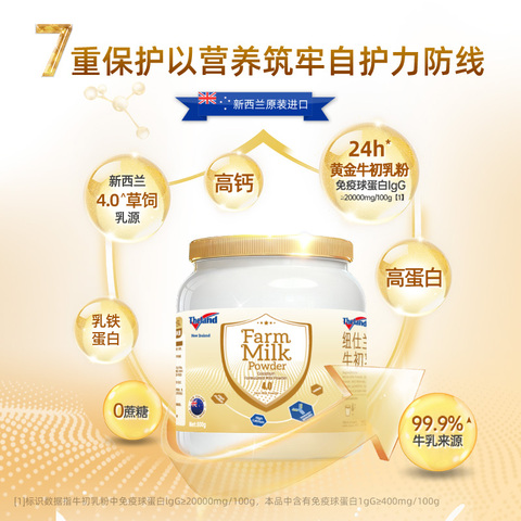 黄金牛初乳,含乳铁蛋白,牛妈妈的天赐礼物,24小时内“液态黄金”,纽仕兰进口4.0高蛋白牛初乳奶粉800g罐装