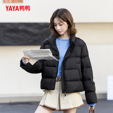 YAYA鸭鸭羽绒服女冬季新款立领90白鸭绒面包服时尚显瘦保暖短外套