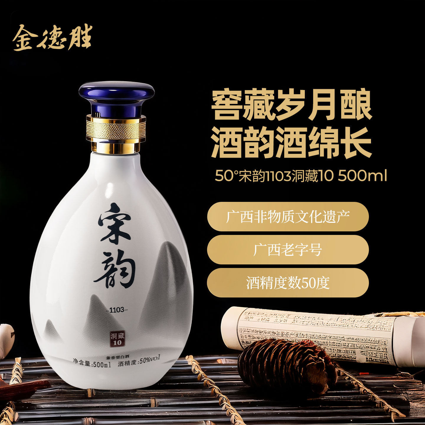 金德胜宋韵系列白酒洞藏10年50度兼香型白酒500ml礼盒装