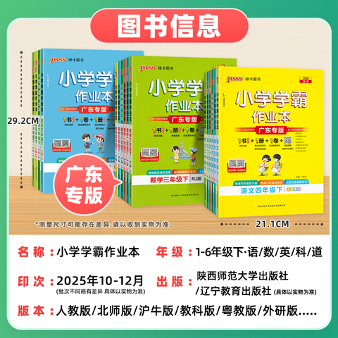 【2026春绿卡小学学霸作业本】广东专版,覆盖一至六年级全科目,人教、教科、沪教、牛津等多版本可选,同步教材,助力孩子高效学习!