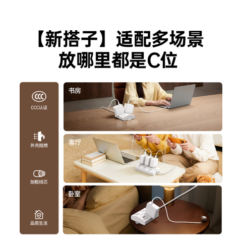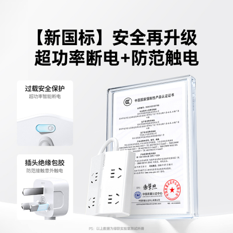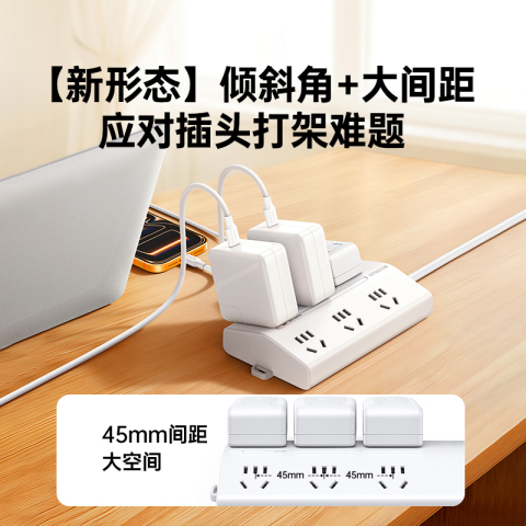 【绿联官旗】T4梯形排插插座接线板多功能★4位5孔全长0.5米,T4·梯形排插,四孔位,新国标3C认证!15°斜面插头,不打架~一体式过载,保护开关~智能过载保护,750°高温阻燃!放哪里都安全!随时安心用电~