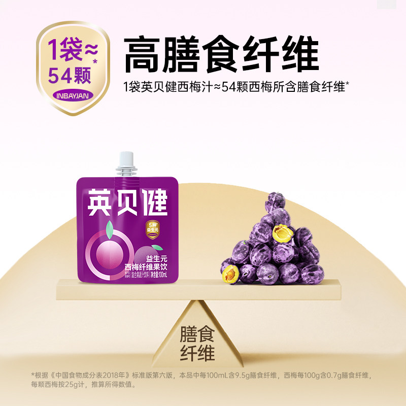 英贝健大餐救星益生元西梅汁浓缩原浆果蔬汁饮料100ml*30袋组合装