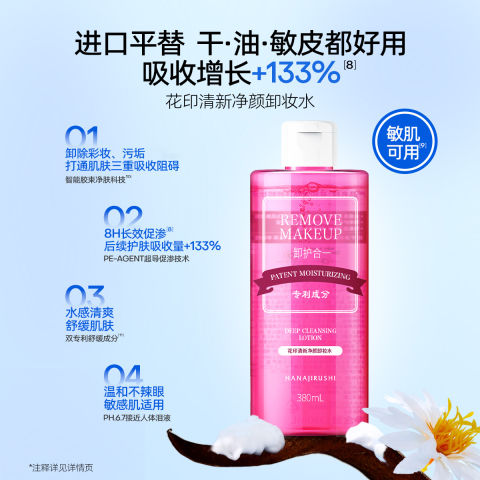 敏皮放心用|花印卸妆水女三合一深层清洁,99ml眼唇脸三合一手掌,0酒精0香精0糖醇,温和养肤,干敏肌必备!雪姨同款卸妆水!真的超好用!!!手慢无!