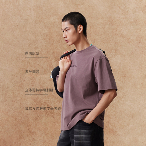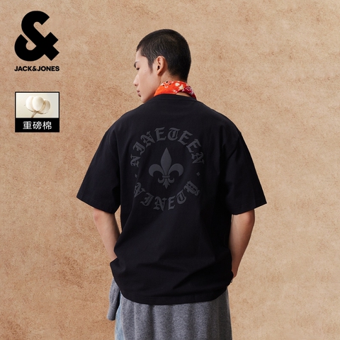 【重磅棉】杰克琼斯男装春夏新款刺绣T恤印打底衫情侣装刺绣宽松