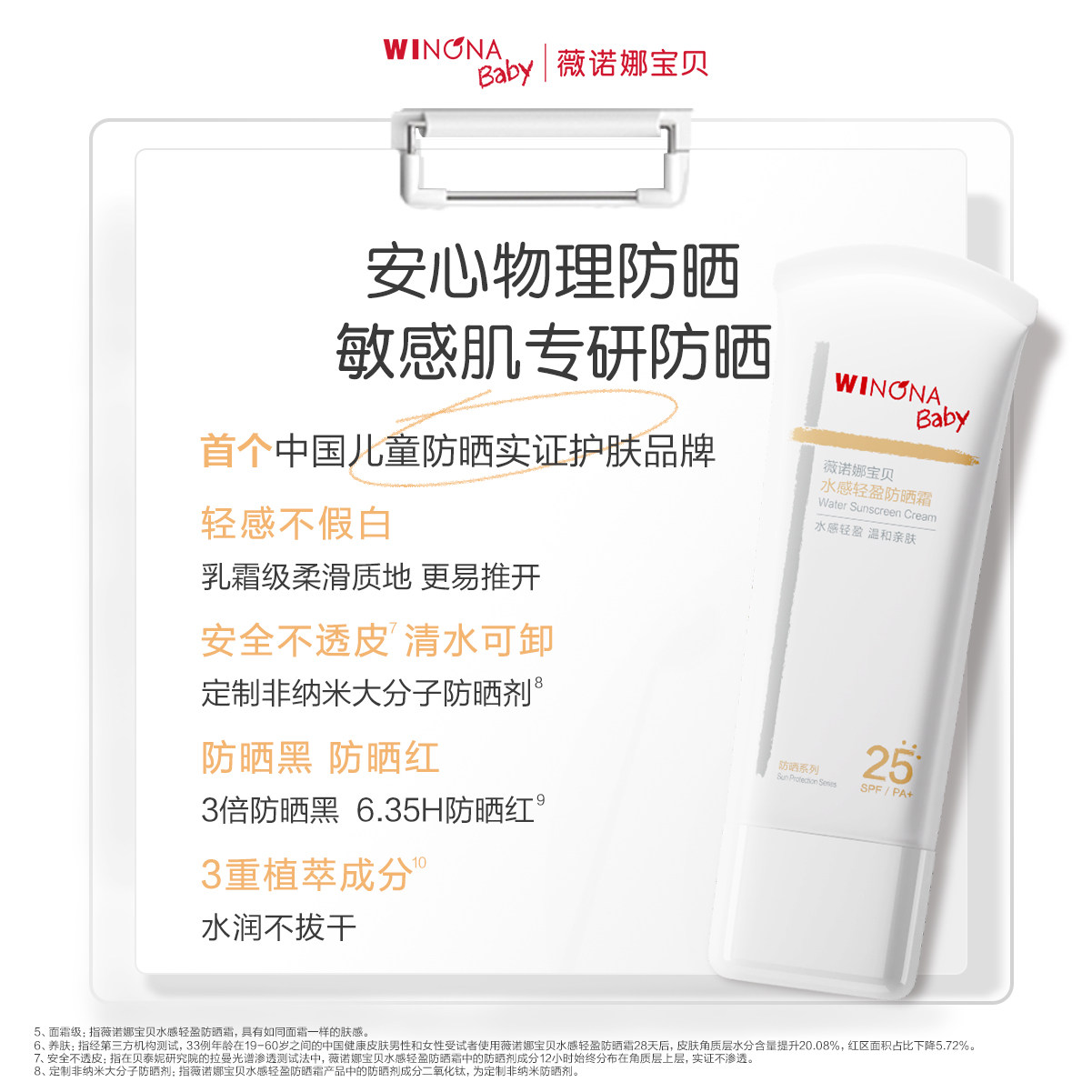 薇诺娜宝贝儿童防晒霜安心物理防晒乳清水可卸宝宝专用防晒SPF25