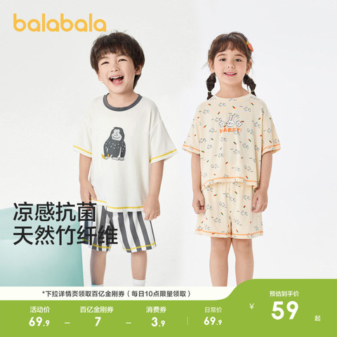 【天猫春上新超级立减12.4元】夏季必备!巴拉巴拉儿童睡衣套装,凉感抗菌设计,透气舒适,适合小童、中大童,居家穿着更清爽。