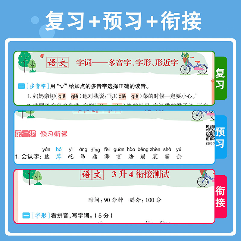 语数英三合一,多种题型,精选好题,30天打卡计划,科学规划暑假,语文打牢基础,逐步提升。数学各种名师讲解重难题,点播解题方法和思路。英语按照词汇,句型,阅读步骤编写,全方位提升英语听说读写能力。