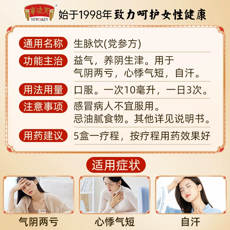 半边天生脉饮党参口服液,8支装,补气养阴,调理轻症,无添加更安心,植物精华浓缩,健康好选择!