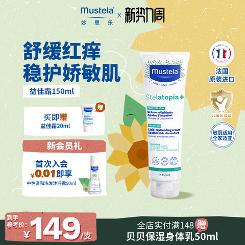 (赠同款益佳霜20ml)法国mustela妙思乐思恬雅滋润膏儿童宝宝身体乳干红婴儿无香润肤(叠淘金币16.72+88vip到手120.08)!!