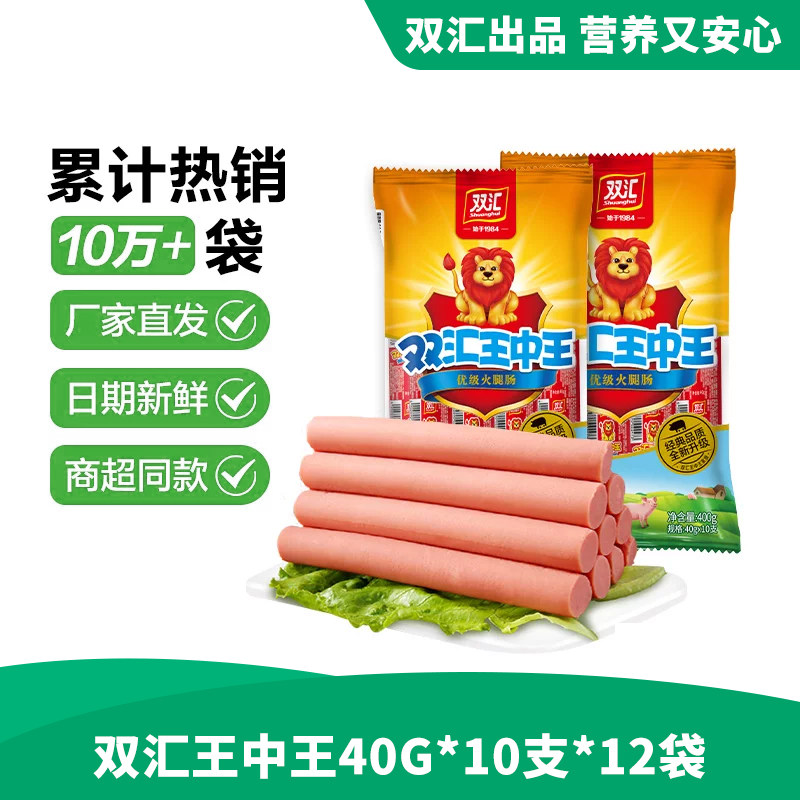 双汇王中王火腿肠400g/袋,即食方便,泡面搭档!性价比超高,口感鲜美,适合家庭囤货或批发!