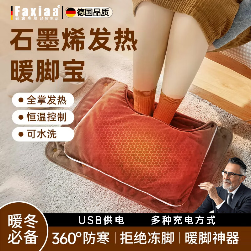 筏芯德国冬季石墨烯加热暖脚宝床上睡觉发热袋usb插电办公室暖脚垫 咖啡色—石墨烯加热暖脚宝