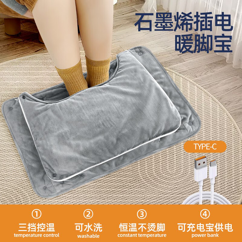 筏芯德国冬季石墨烯加热暖脚宝床上睡觉发热袋usb插电办公室暖脚垫 典雅灰—石墨烯加热暖脚宝