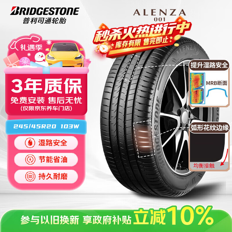 普利司通(Bridgestone)汽车轮胎 245/45R20 103W XL A001 原配宝马IX3