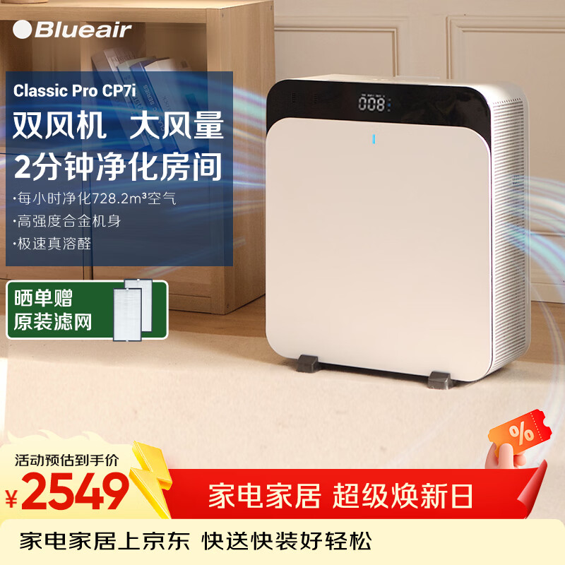 布鲁雅尔(Blueair)空气净化器 CP7i 除甲醛除过敏原异味烟味 303+ 380iF升级款家用电器 CP7i