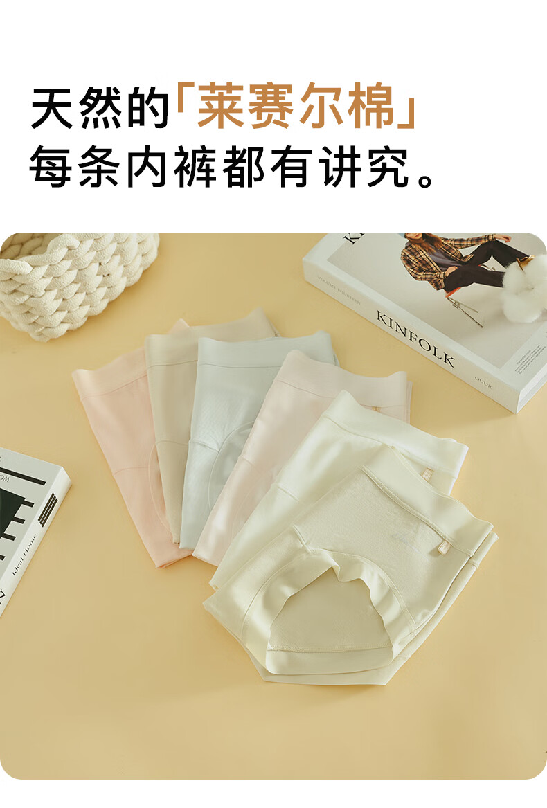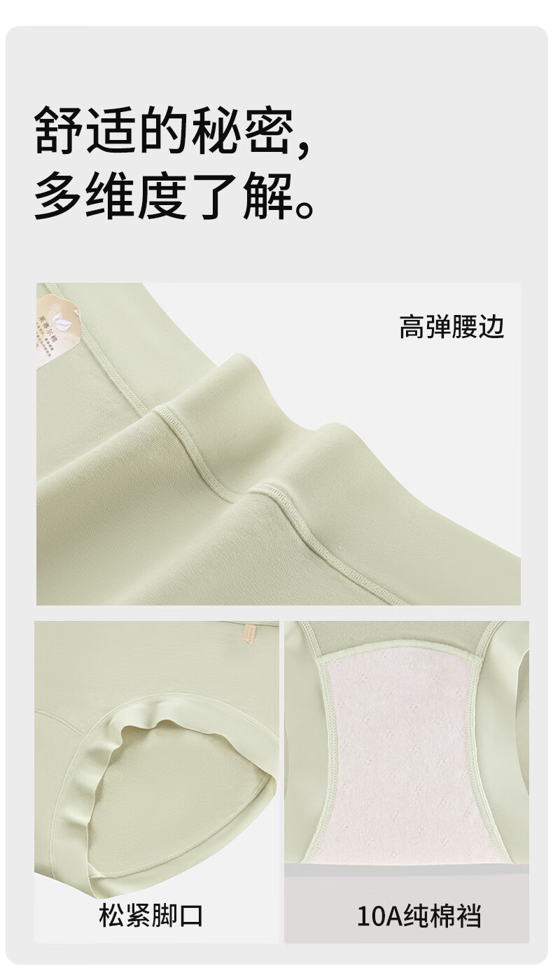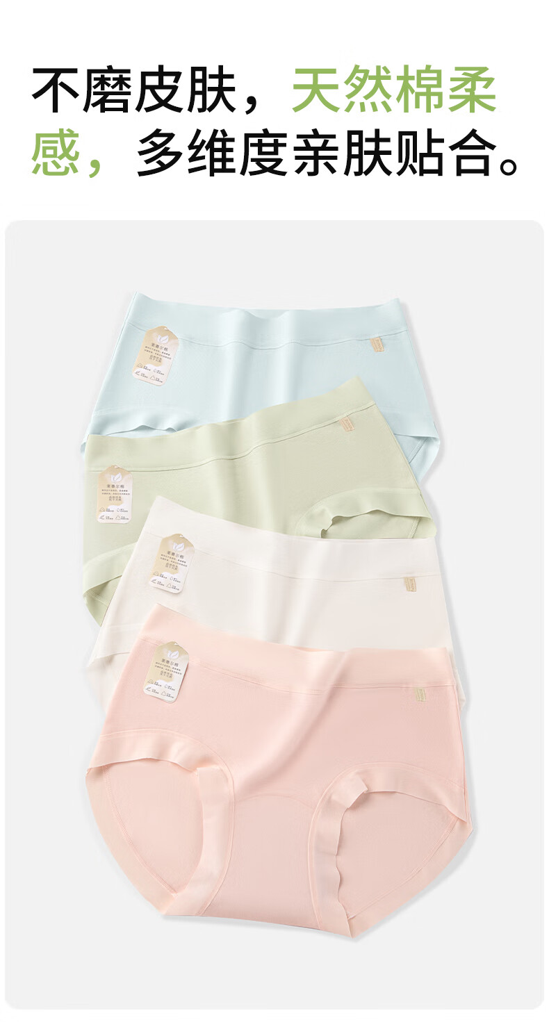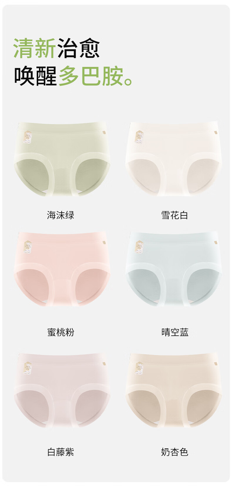 赫利兹莱赛尔棉内裤无痕透气抗菌简约包臀女士三角裤 海沫绿+蜜桃粉+晴空蓝 3条 M 建议80-100斤