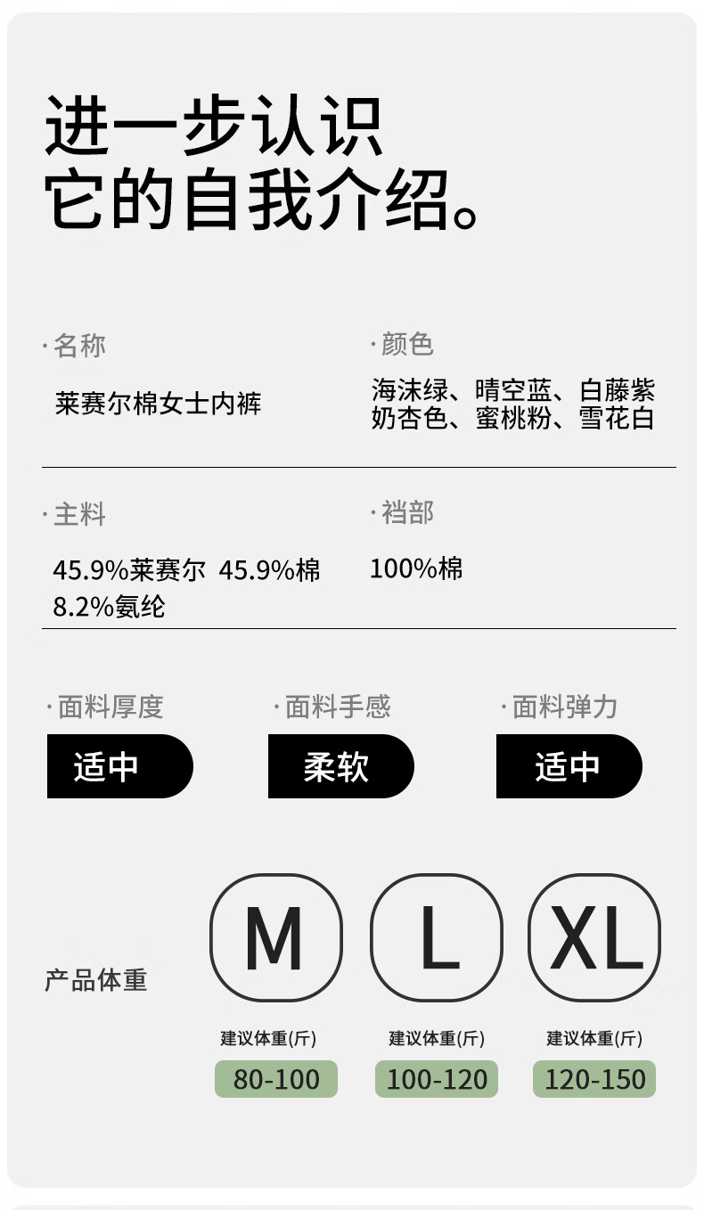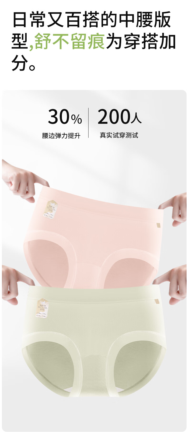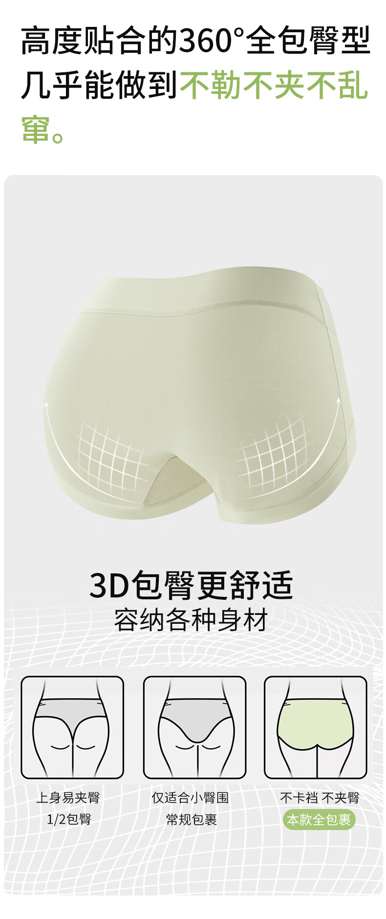 赫利兹莱赛尔棉内裤无痕透气抗菌简约包臀女士三角裤 海沫绿+蜜桃粉+晴空蓝 3条 M 建议80-100斤