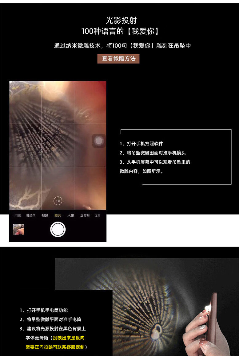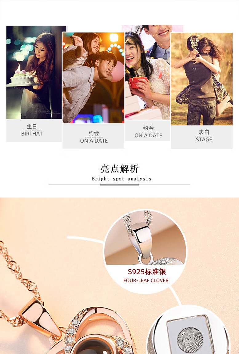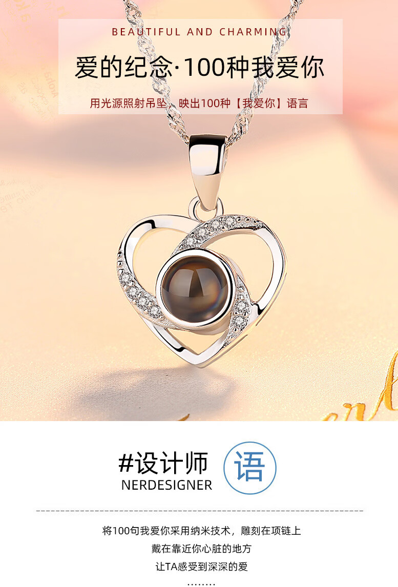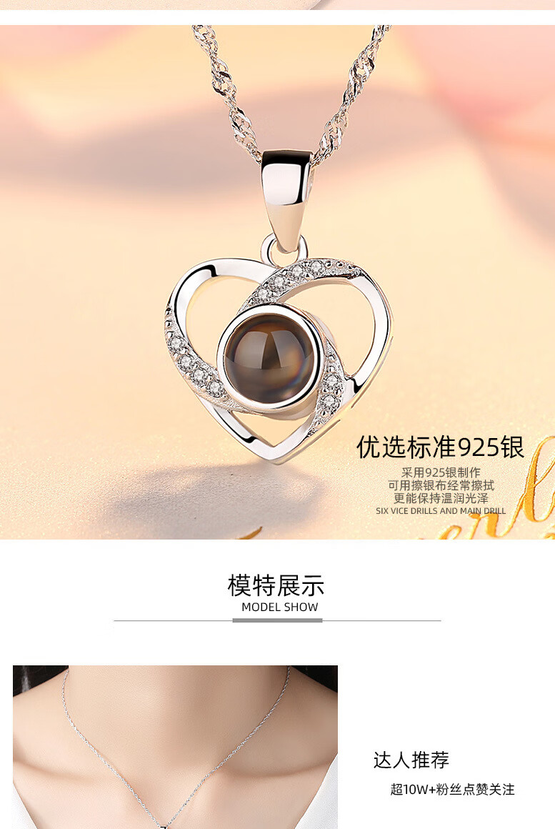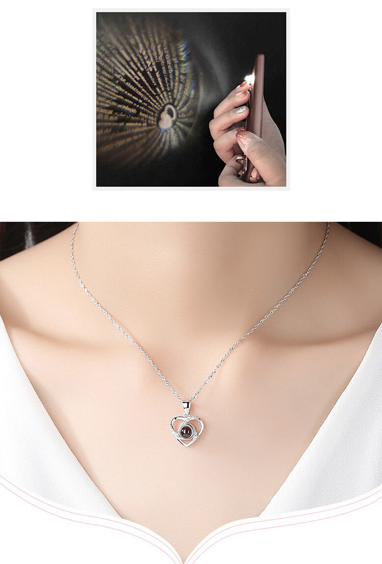 ZAVO定制投影爱的记忆纯银项链女款银吊坠锁骨链情人节送女友生日礼物 【不定制版+证书】玫瑰金色爱的记忆项链