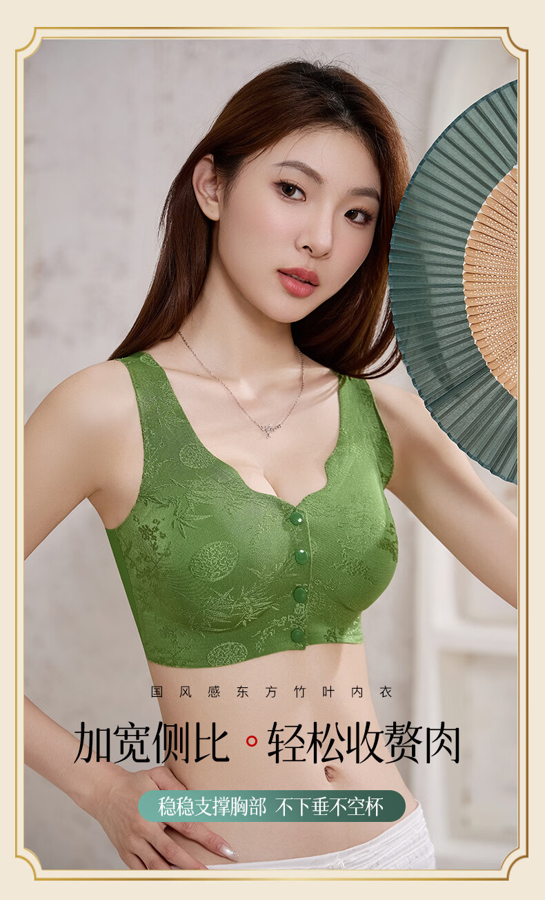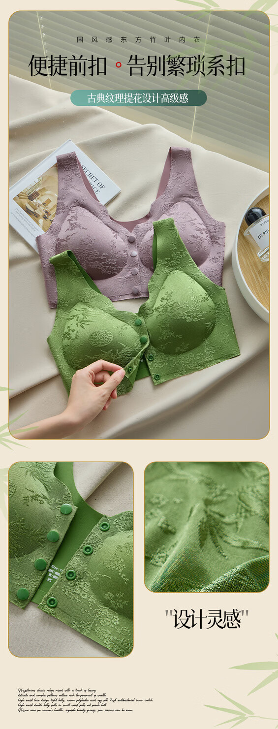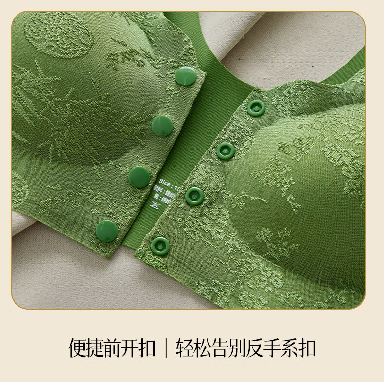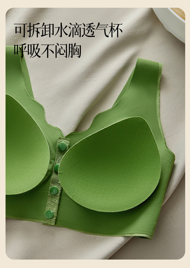 宜而爽中国风蕾丝性感聚拢夏季文胸前扣内衣美背大码前开扣中 绿色 2XL
