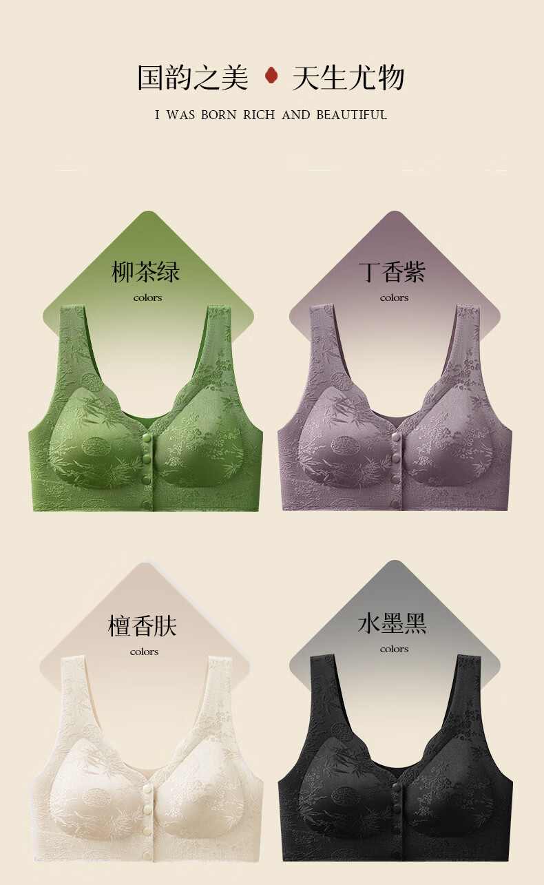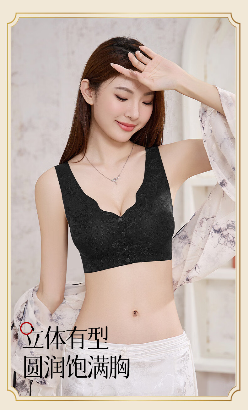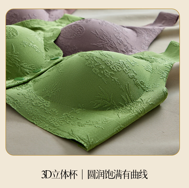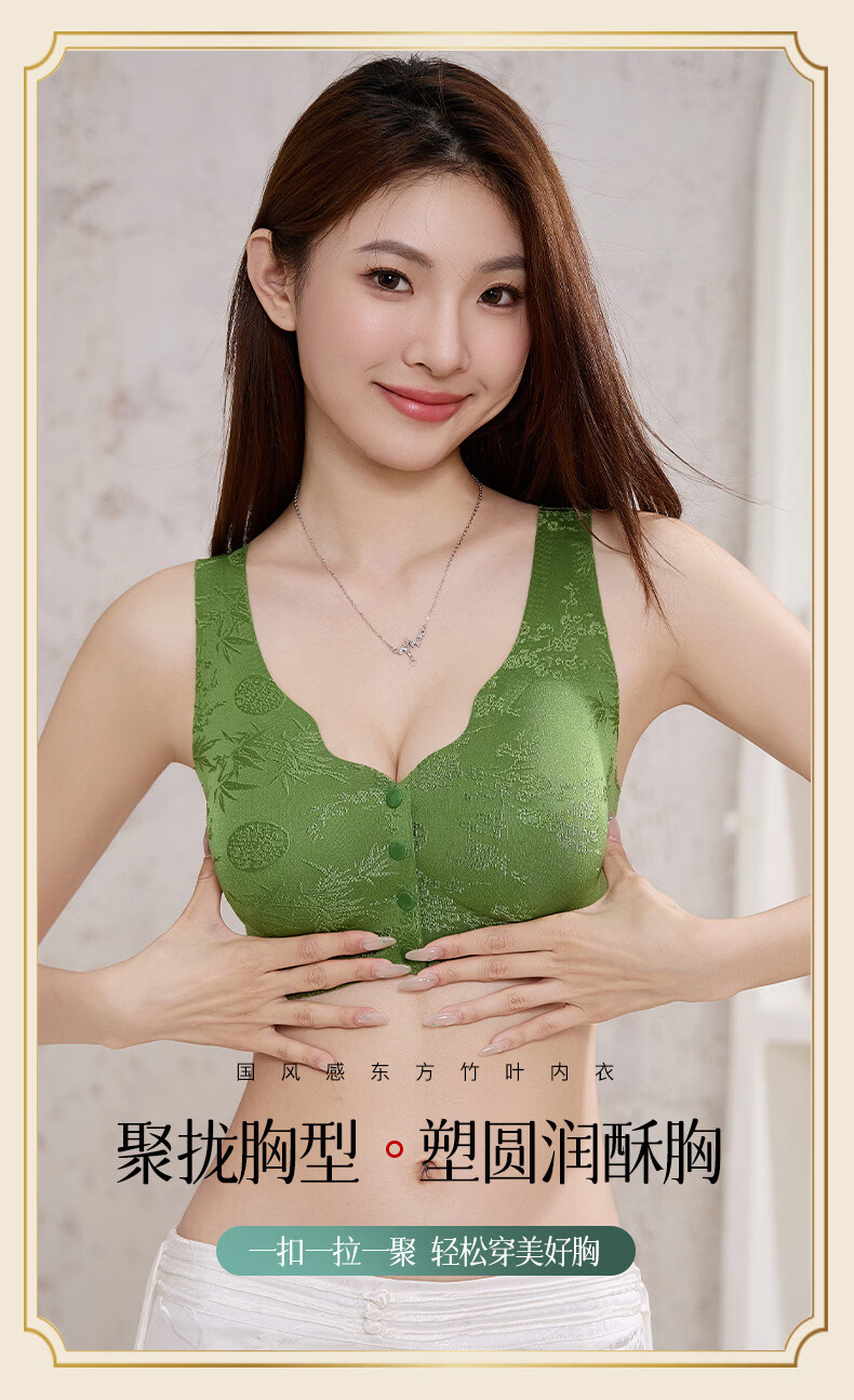 宜而爽中国风蕾丝性感聚拢夏季文胸前扣内衣美背大码前开扣中 绿色 2XL