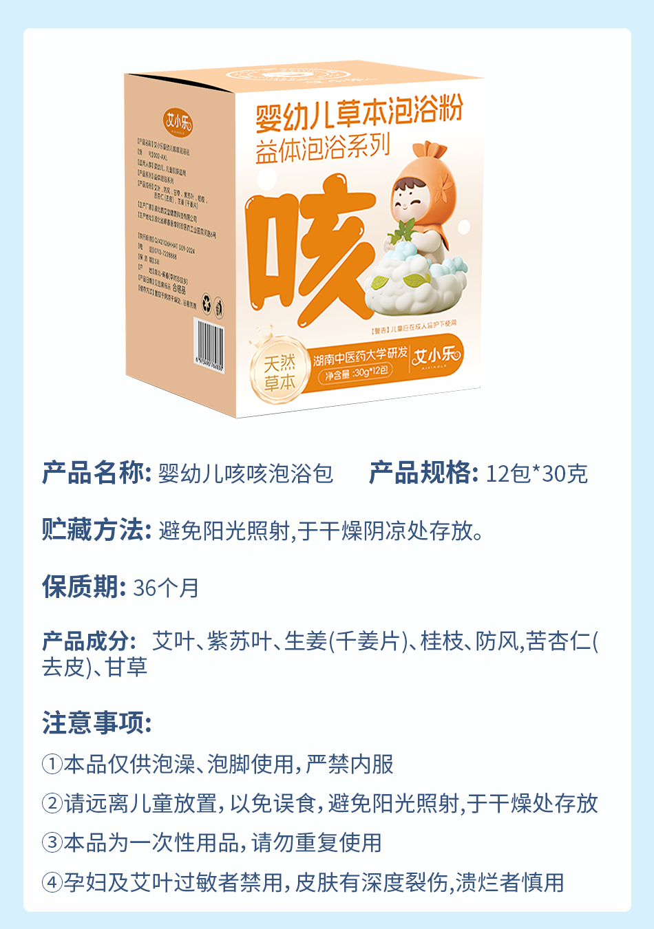 艾小乐婴幼儿泡澡天然草本中药浴洗澡散寒赶走咳咳 赶走咳咳包【加强巩固】36包/1080g