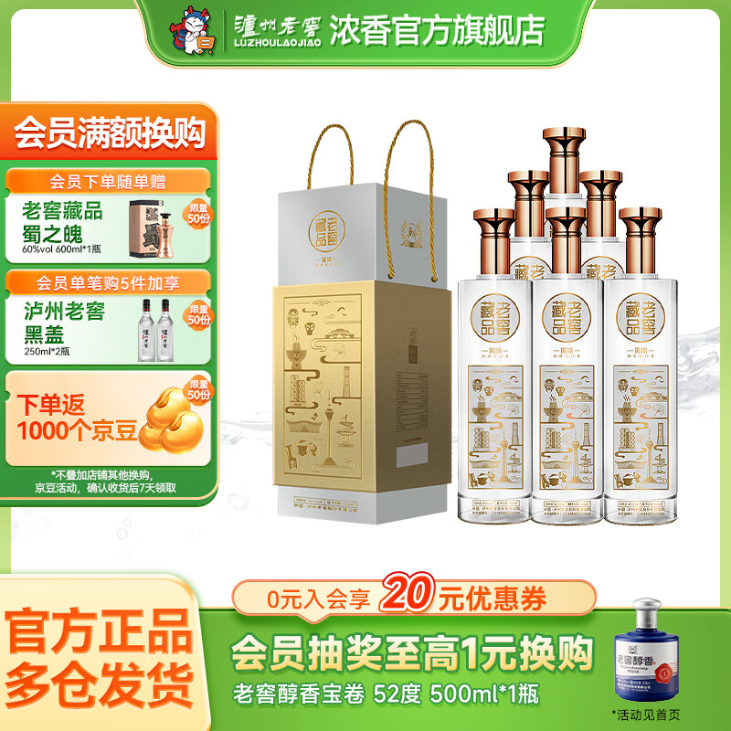 泸州老窖浓香型白酒老窖藏品窖响42度白酒浓香型520ml 送礼宴请口粮酒 42度 520mL 6瓶 整箱装