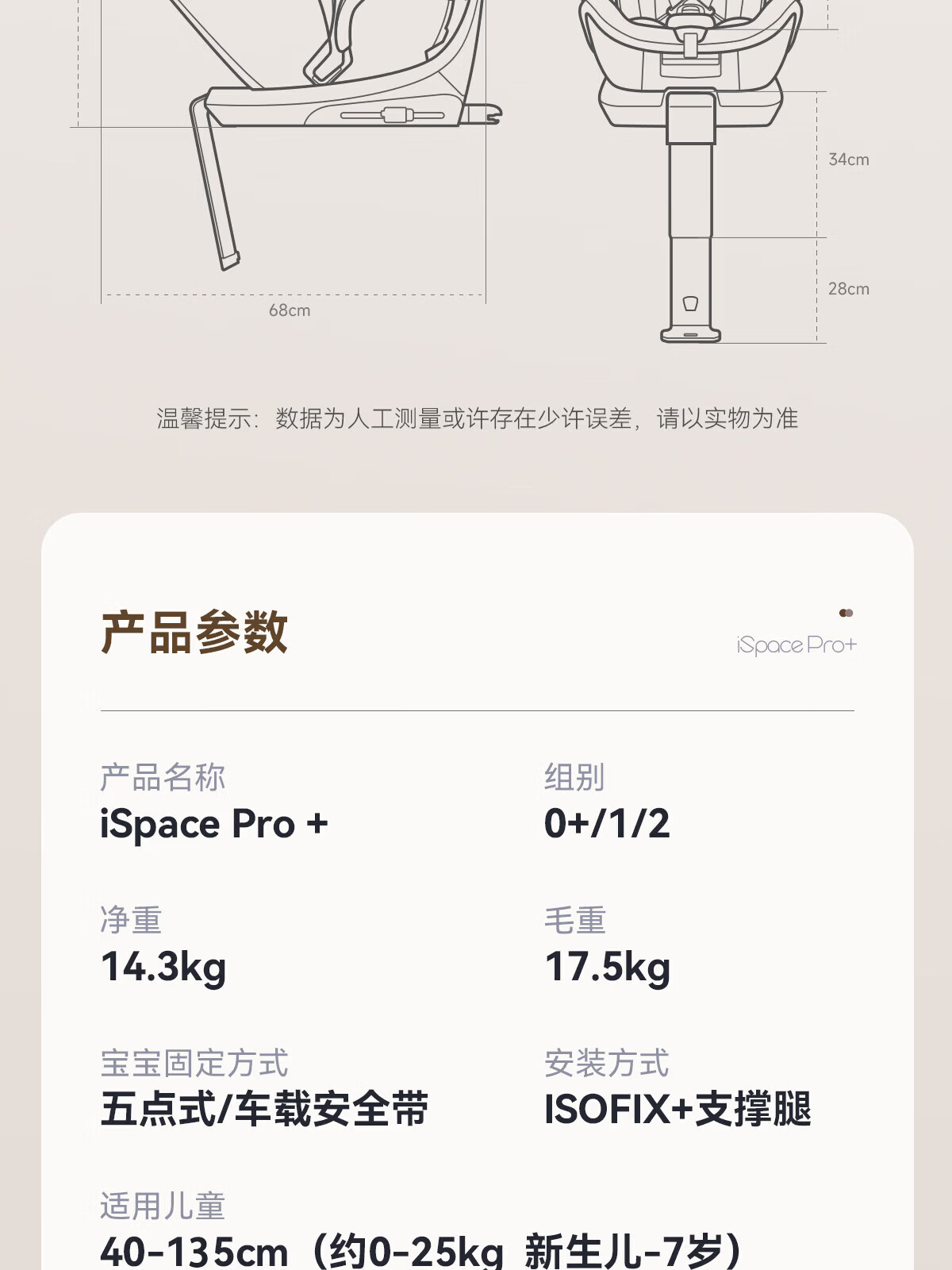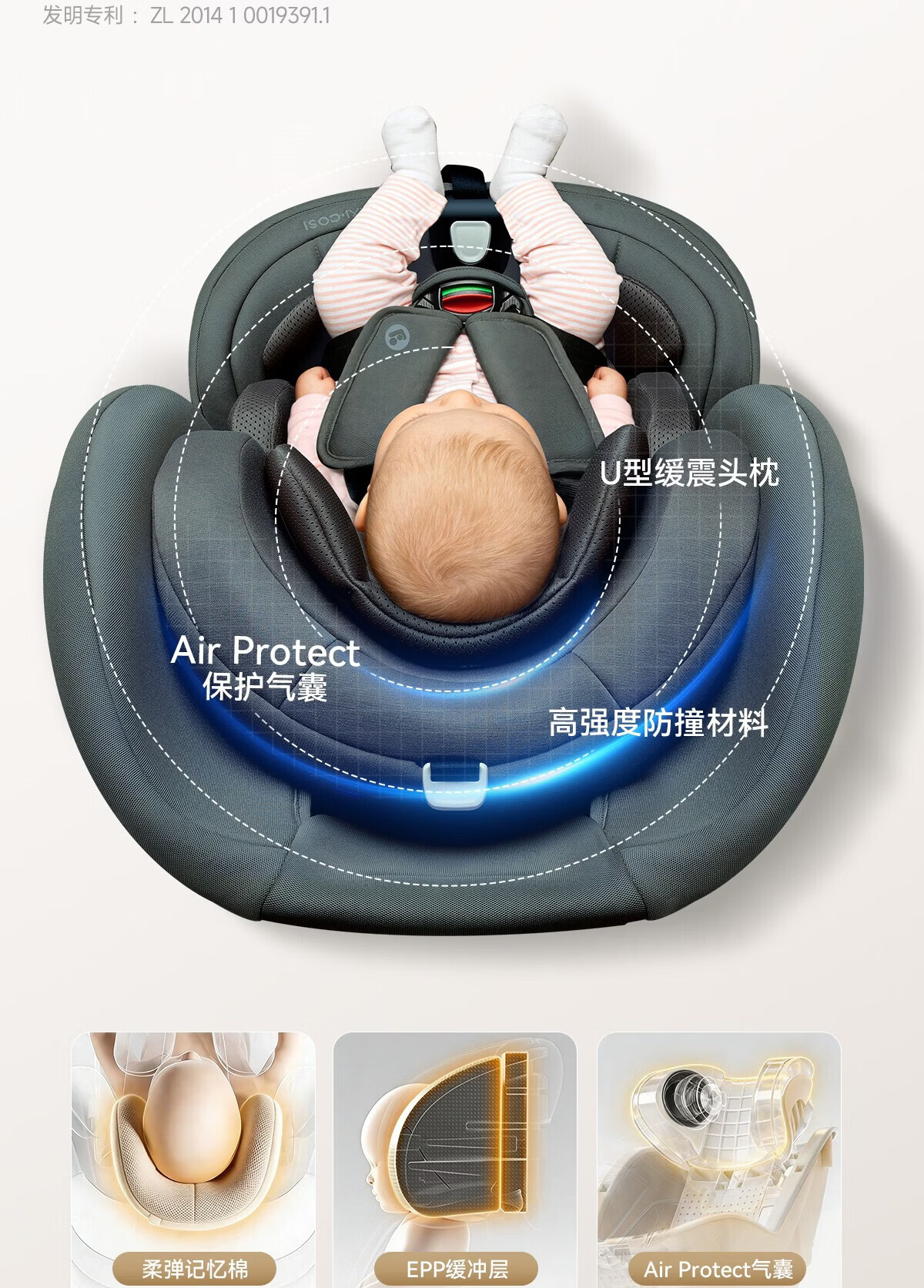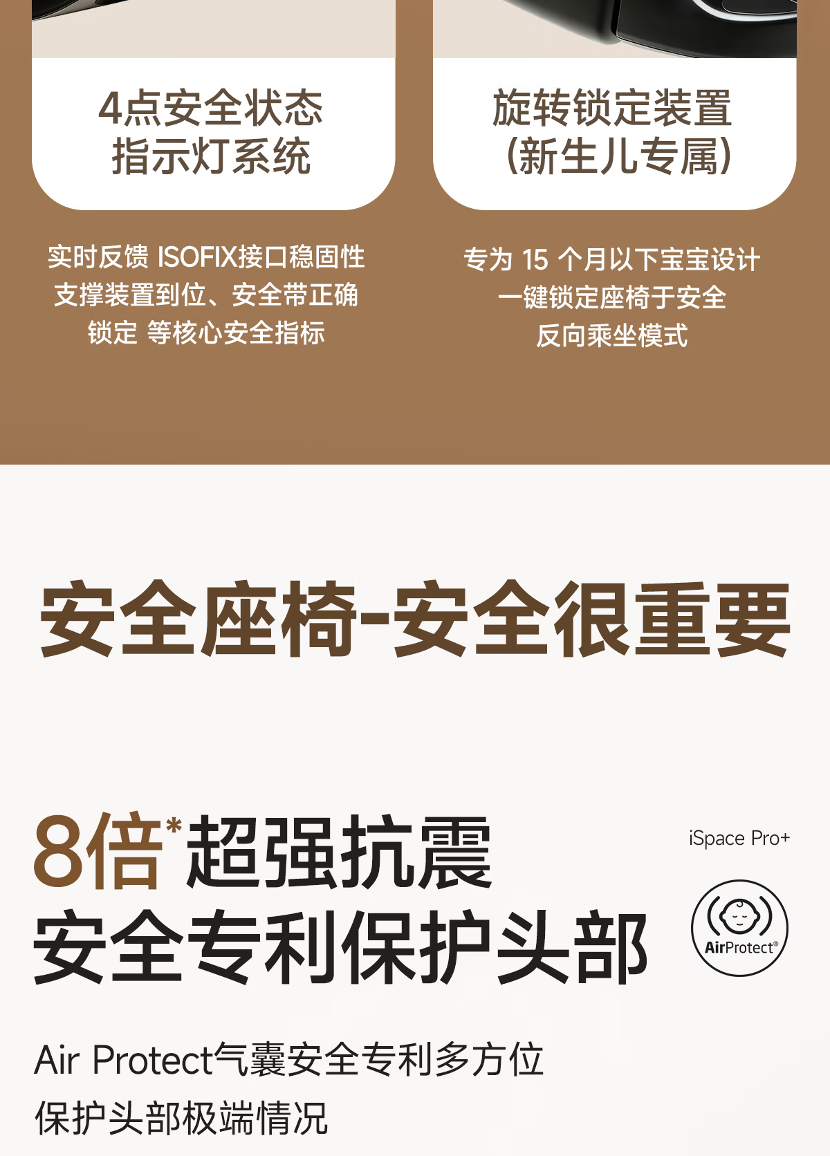 迈可适ispace pro+ 儿童座椅安全座椅0-7岁宝宝椅新生婴儿车载maxcosi 月影棕】0-7岁/双专利守护】iSpace-pro+