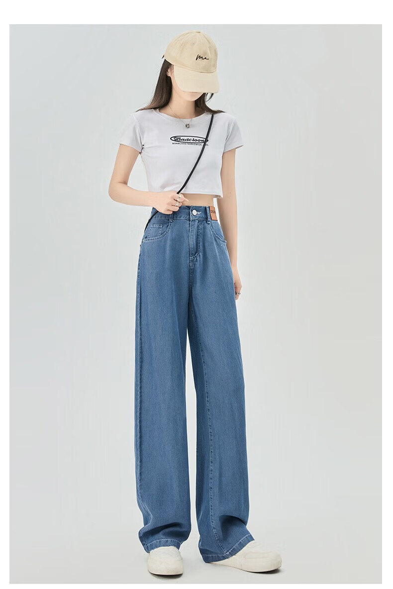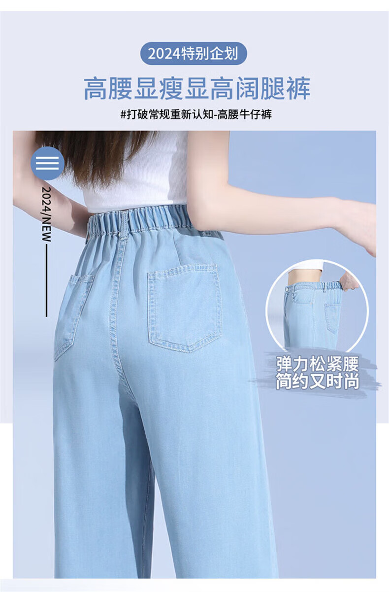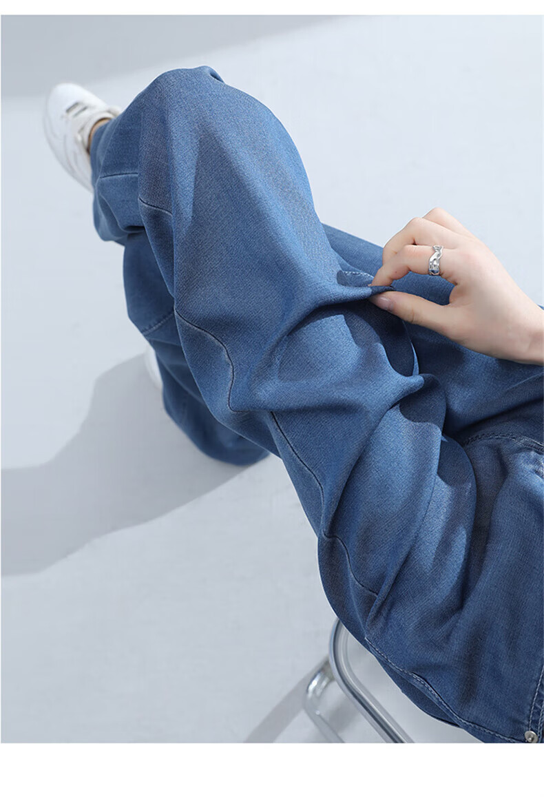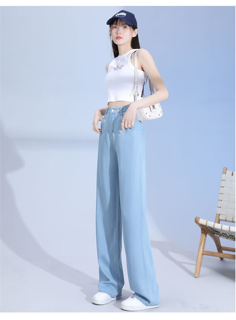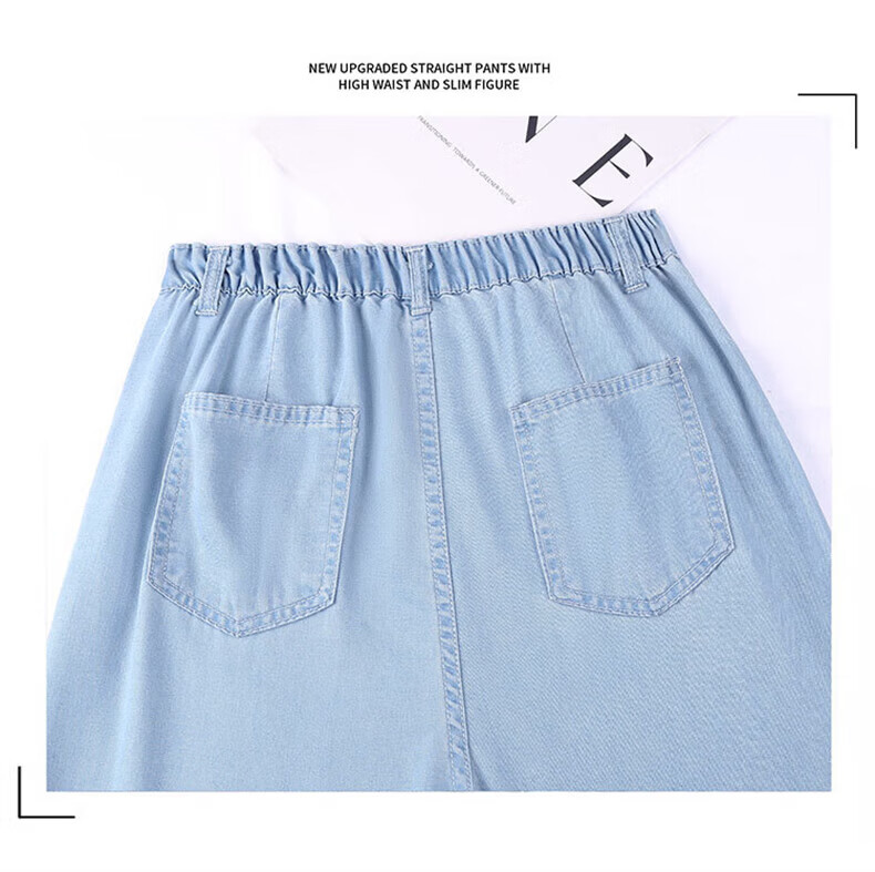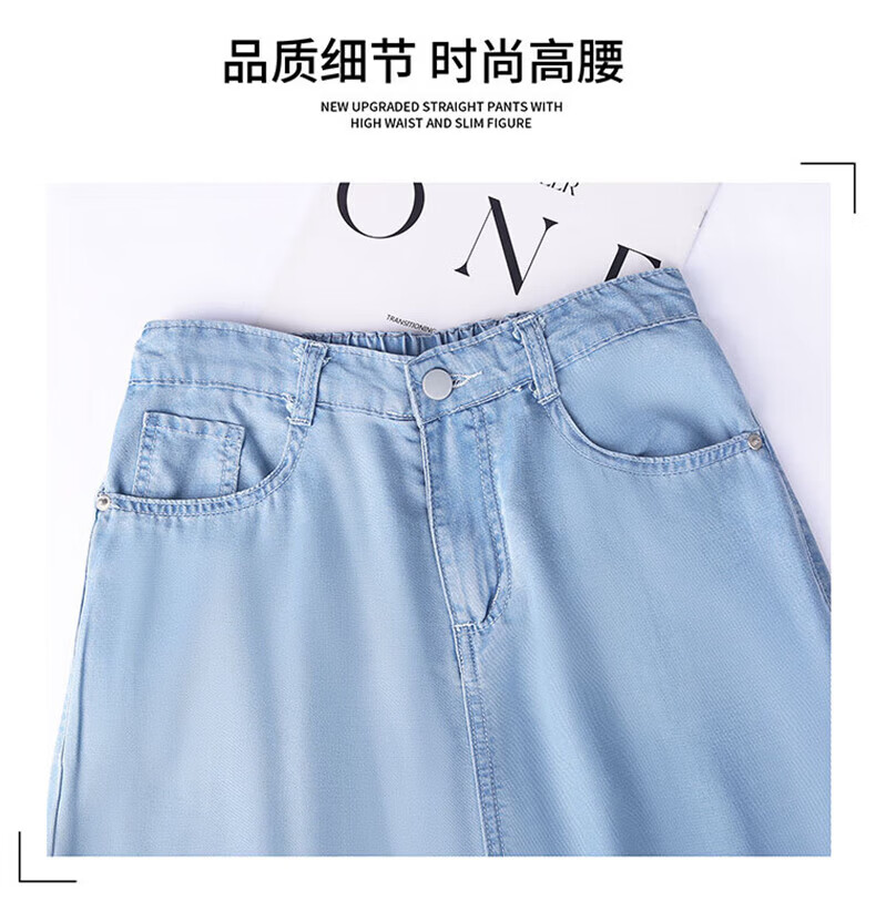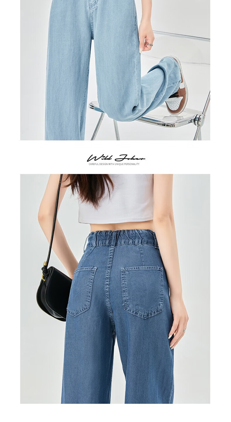 浪莎莱赛尔天丝牛仔裤女夏季薄款小个子高腰阔腿窄版夏天冰丝直筒裤子 浅复古蓝 【无皮边】 M 【适合95-110斤】