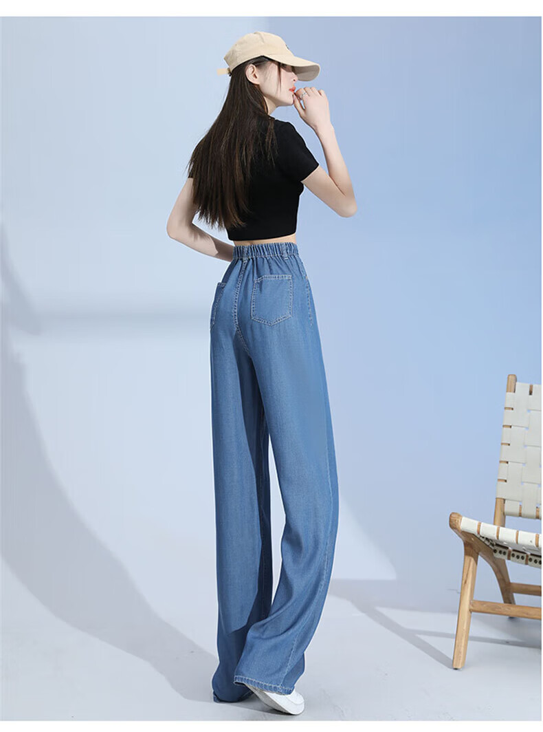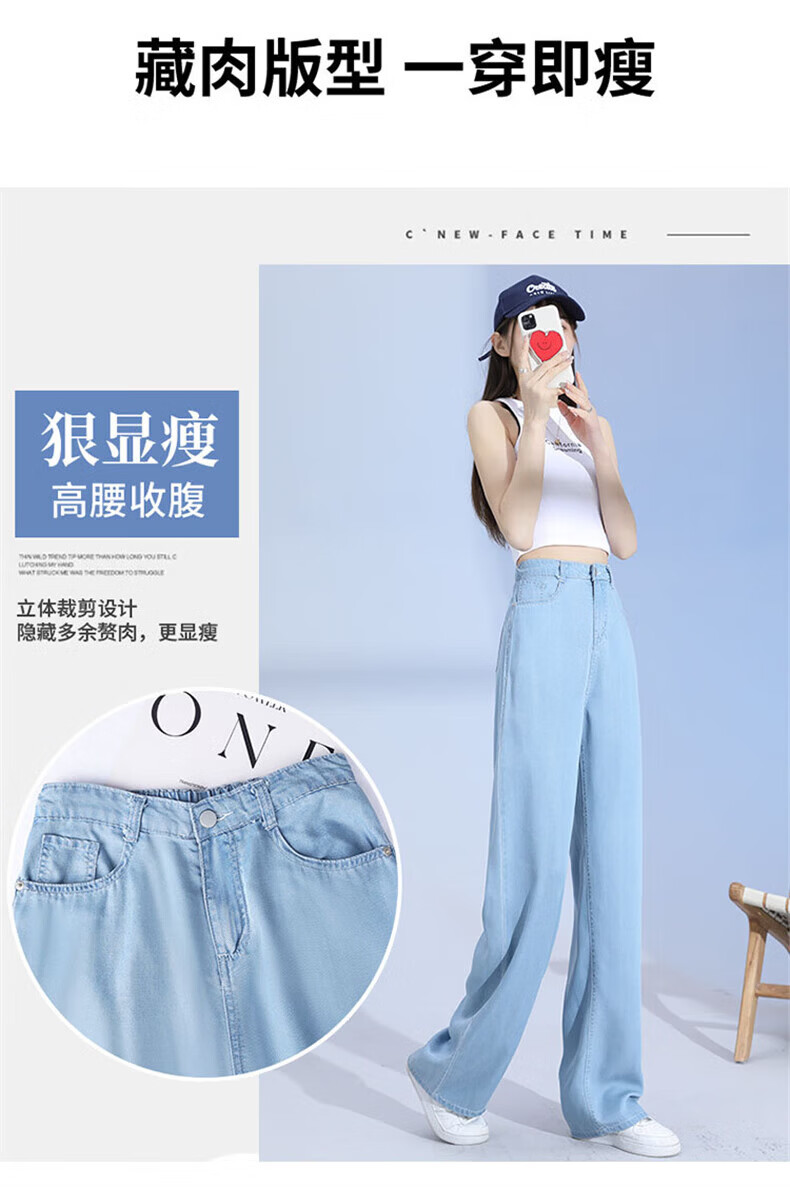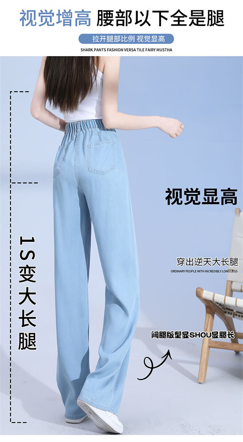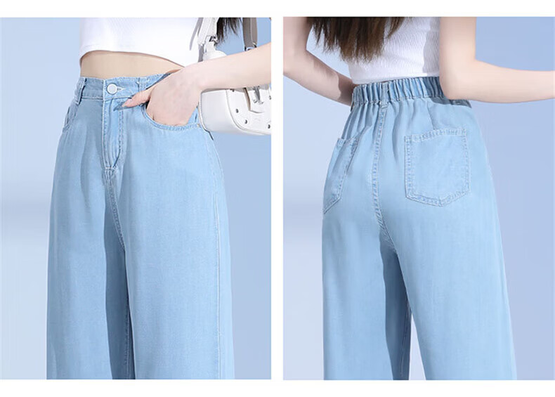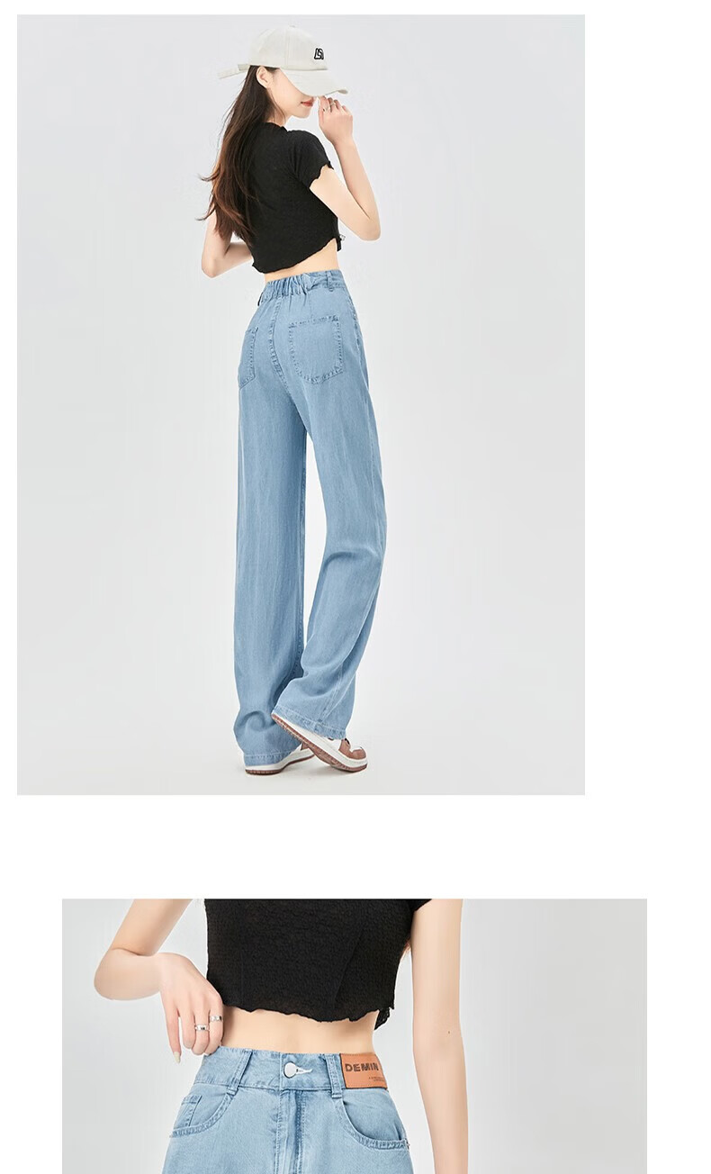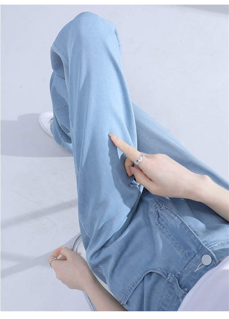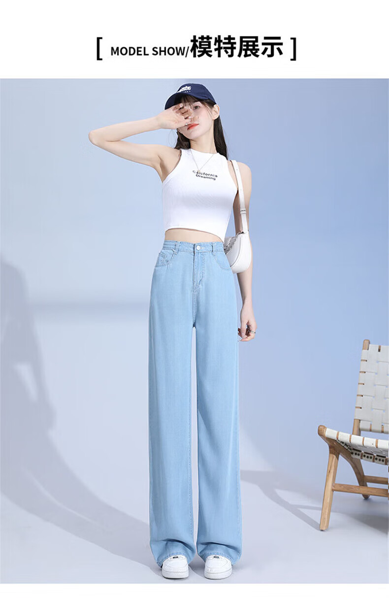 浪莎莱赛尔天丝牛仔裤女夏季薄款小个子高腰阔腿窄版夏天冰丝直筒裤子 浅复古蓝 【无皮边】 M 【适合95-110斤】