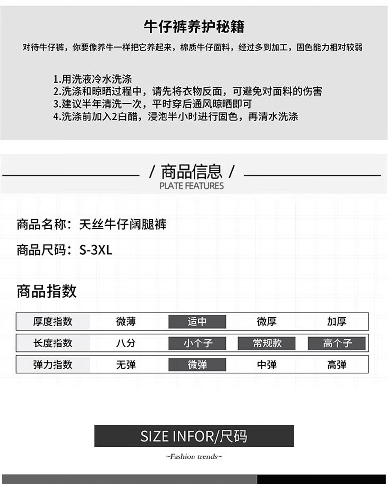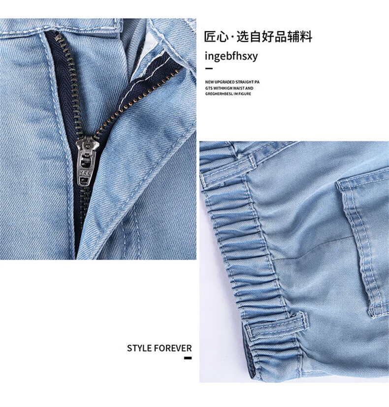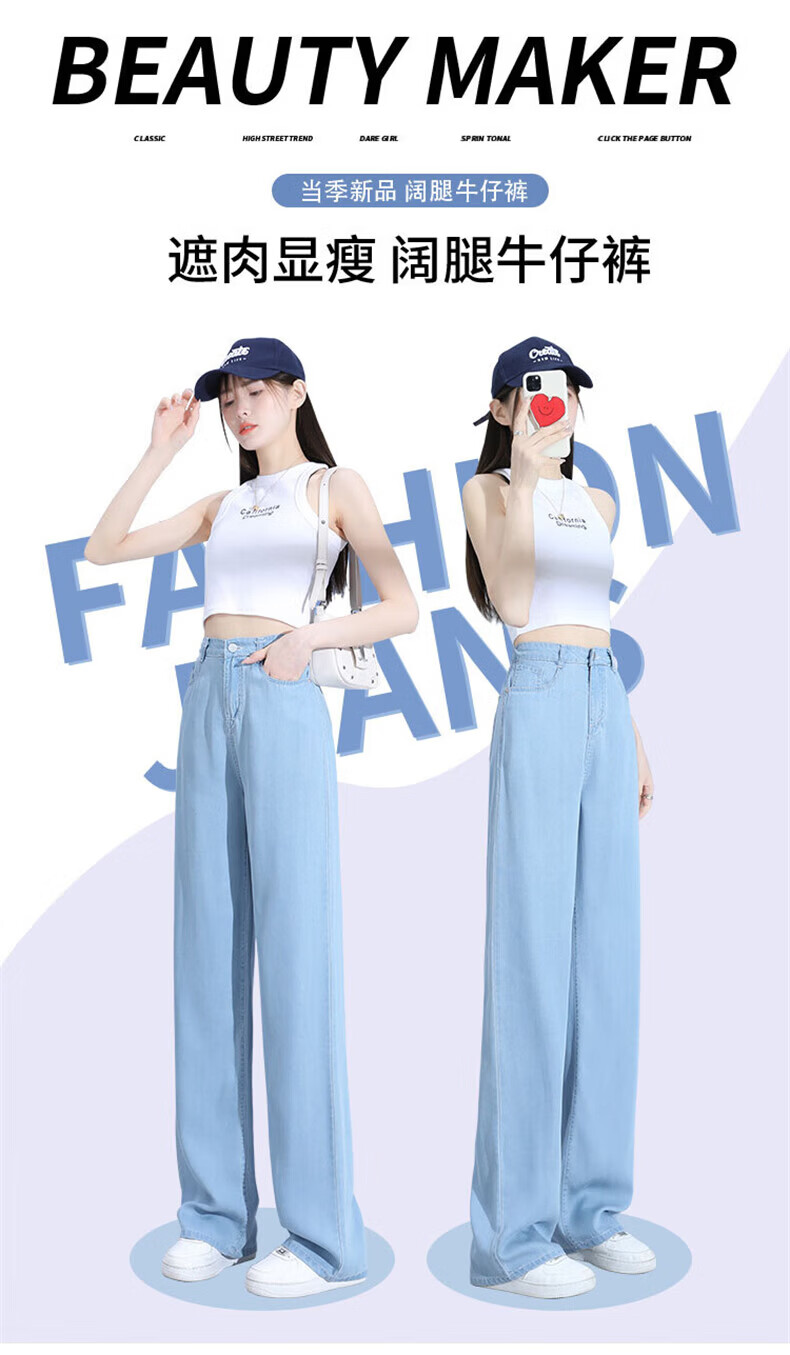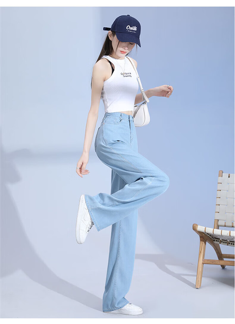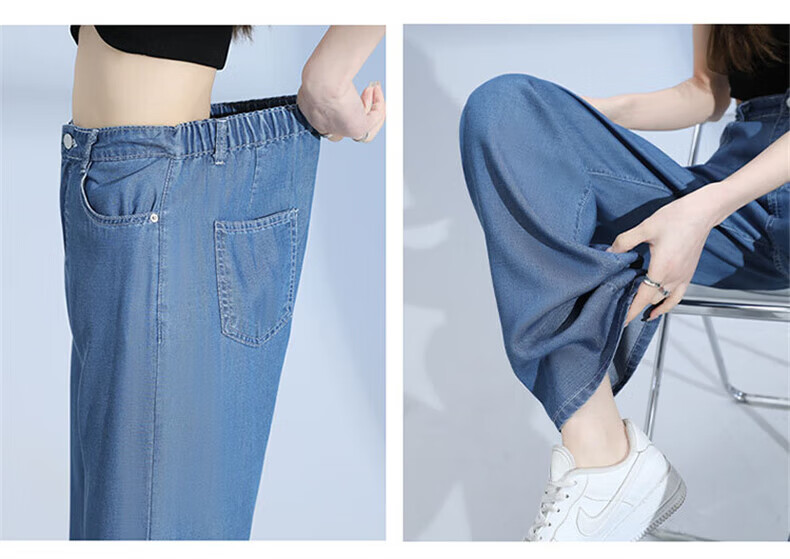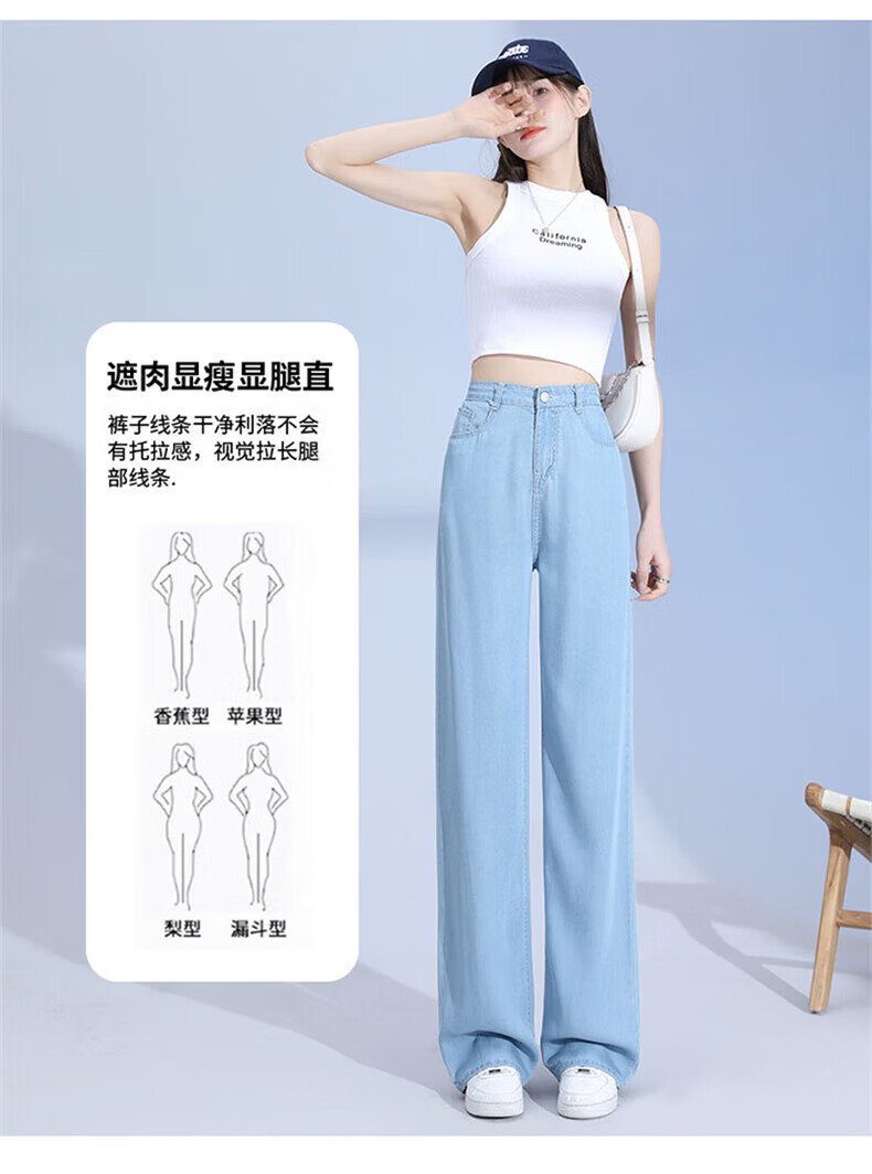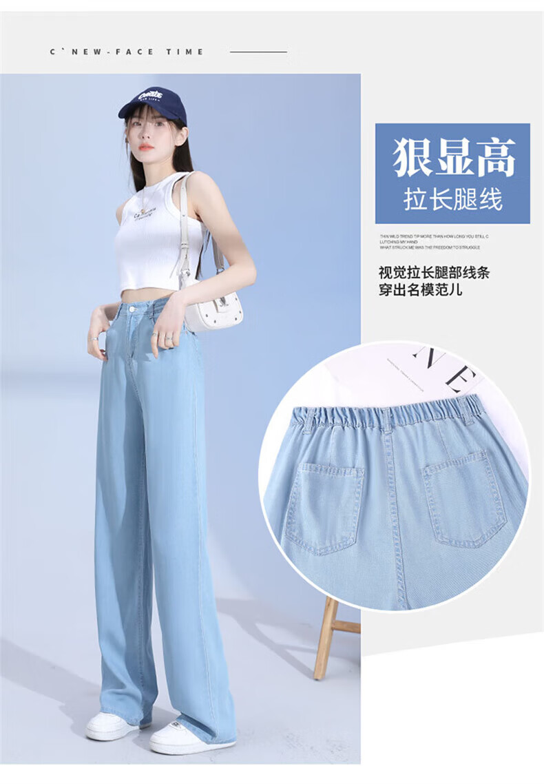 浪莎莱赛尔天丝牛仔裤女夏季薄款小个子高腰阔腿窄版夏天冰丝直筒裤子 浅复古蓝 【无皮边】 M 【适合95-110斤】