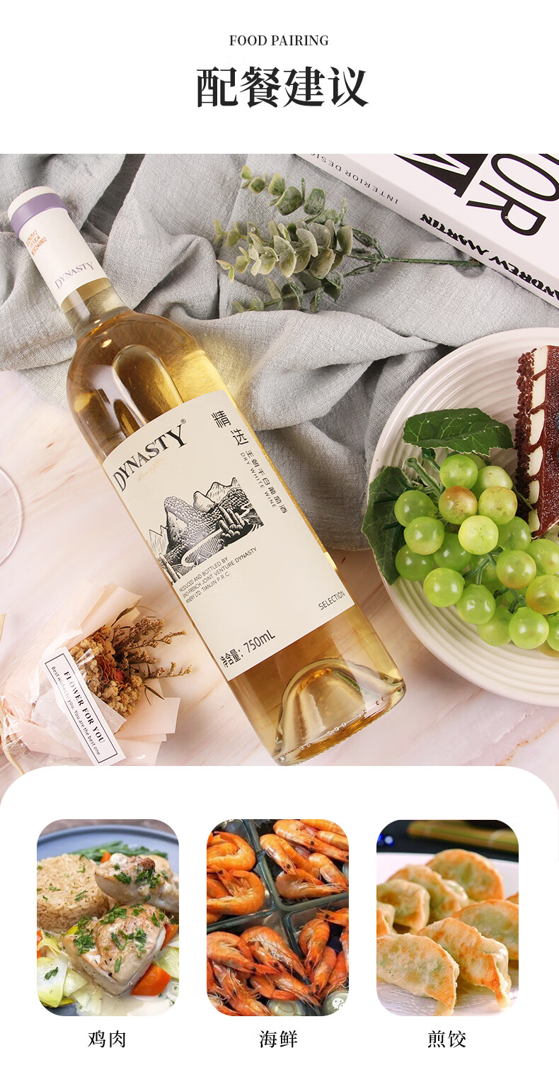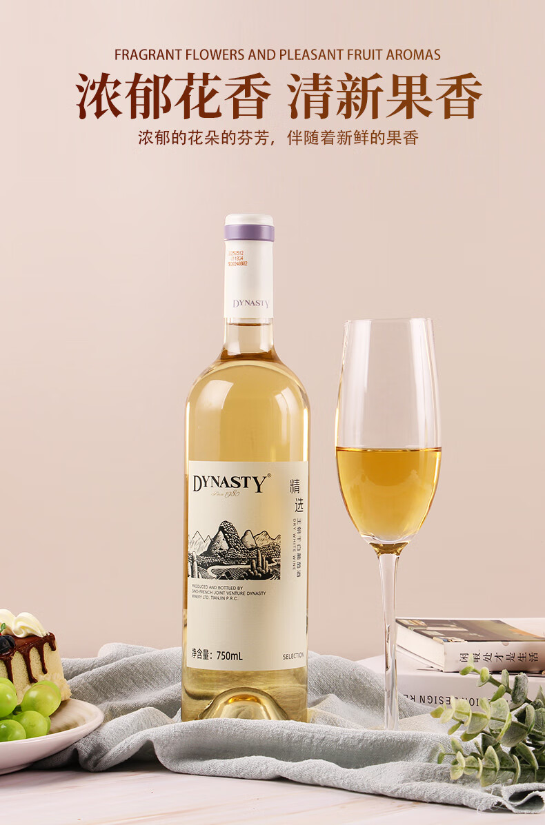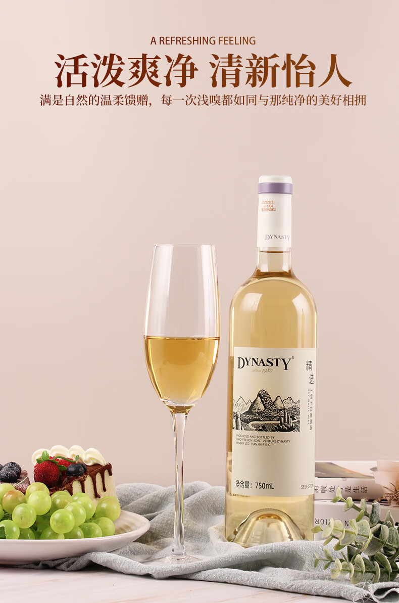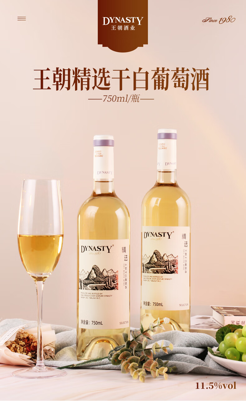 王朝精选干白葡萄酒佐餐国产红酒口粮酒节日送礼11.5度 6瓶装