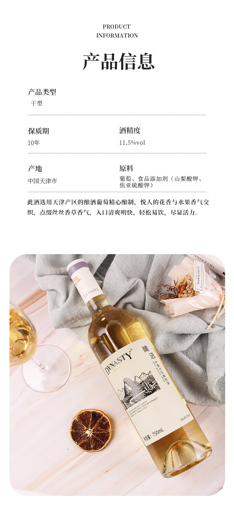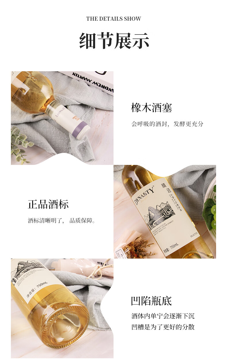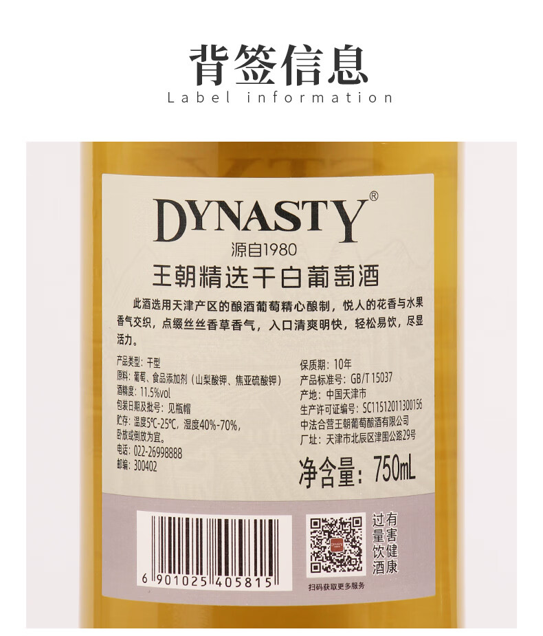 王朝精选干白葡萄酒佐餐国产红酒口粮酒节日送礼11.5度 6瓶装