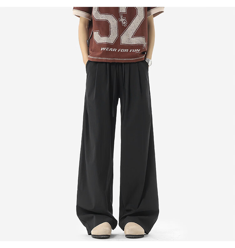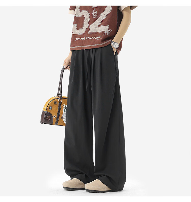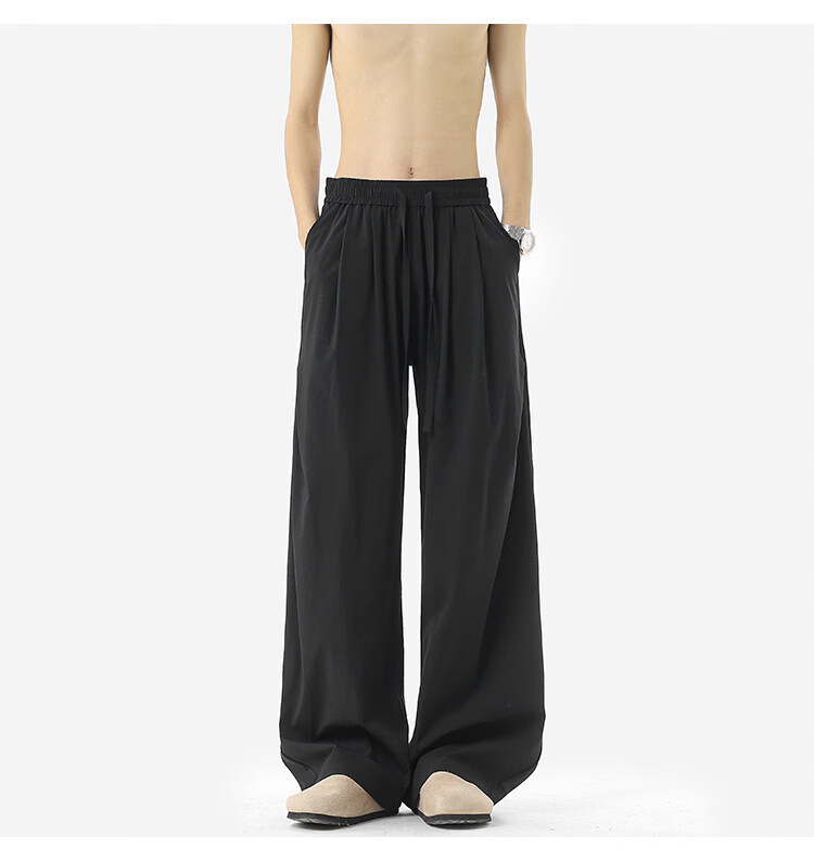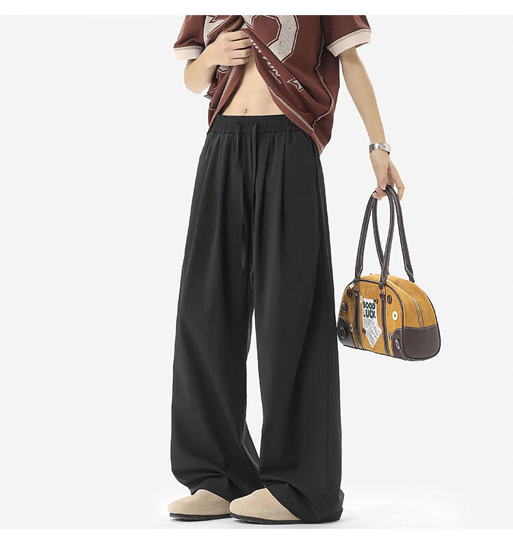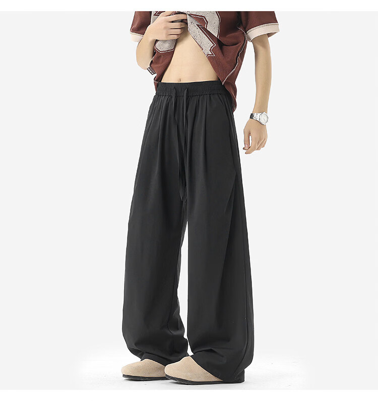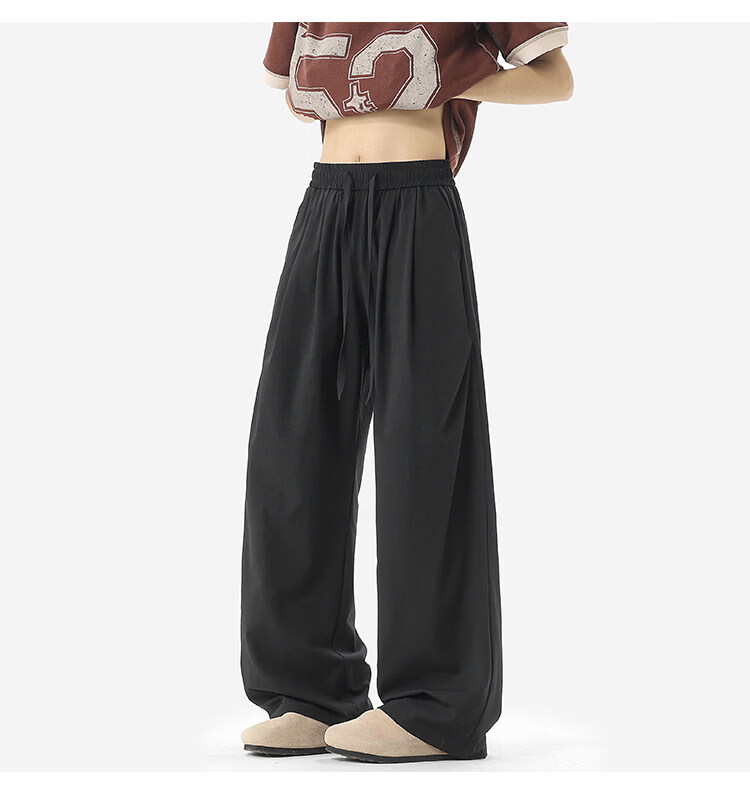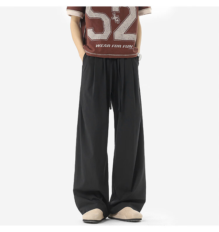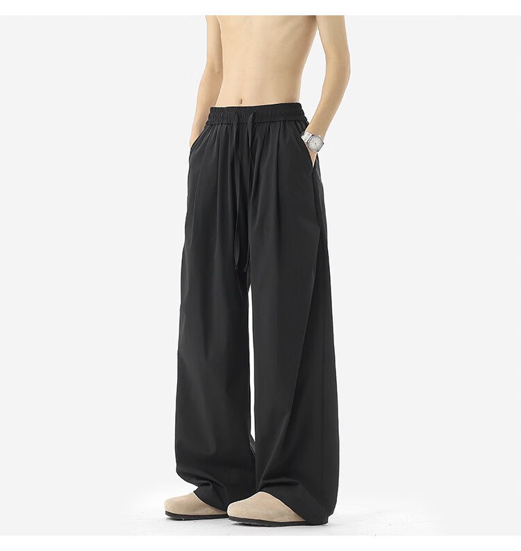 NEW OR MODE凉感冰丝休闲裤男夏季潮牌垂感抽绳长裤百搭设计感宽松阔腿直筒裤 黑色【高品质】 M 【建议90-110斤】