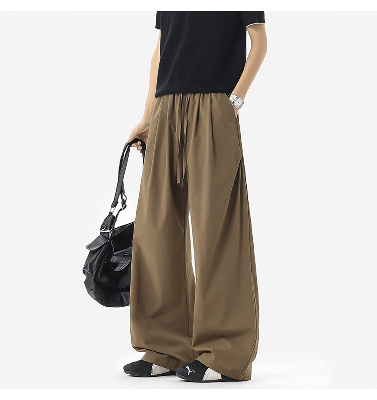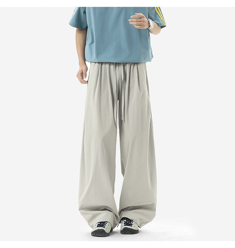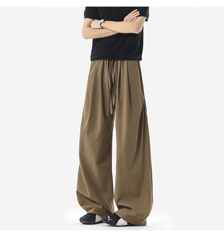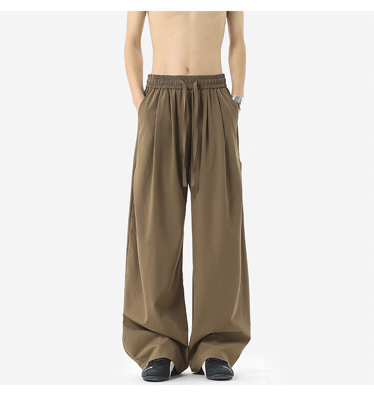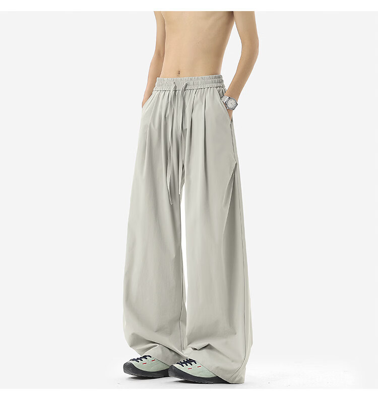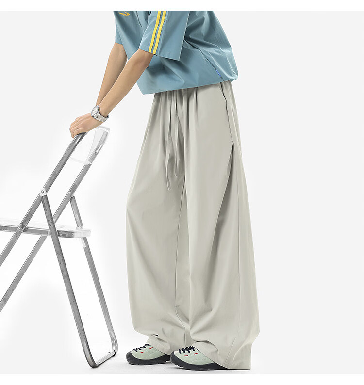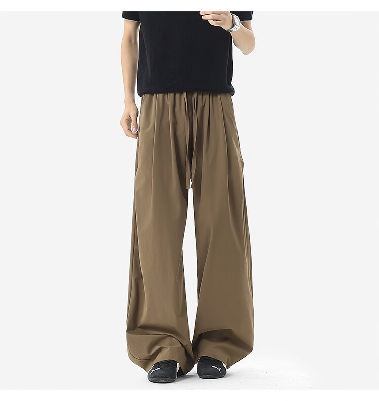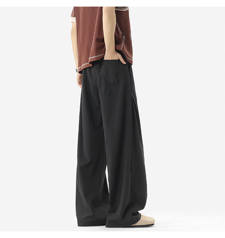 NEW OR MODE凉感冰丝休闲裤男夏季潮牌垂感抽绳长裤百搭设计感宽松阔腿直筒裤 黑色【高品质】 M 【建议90-110斤】