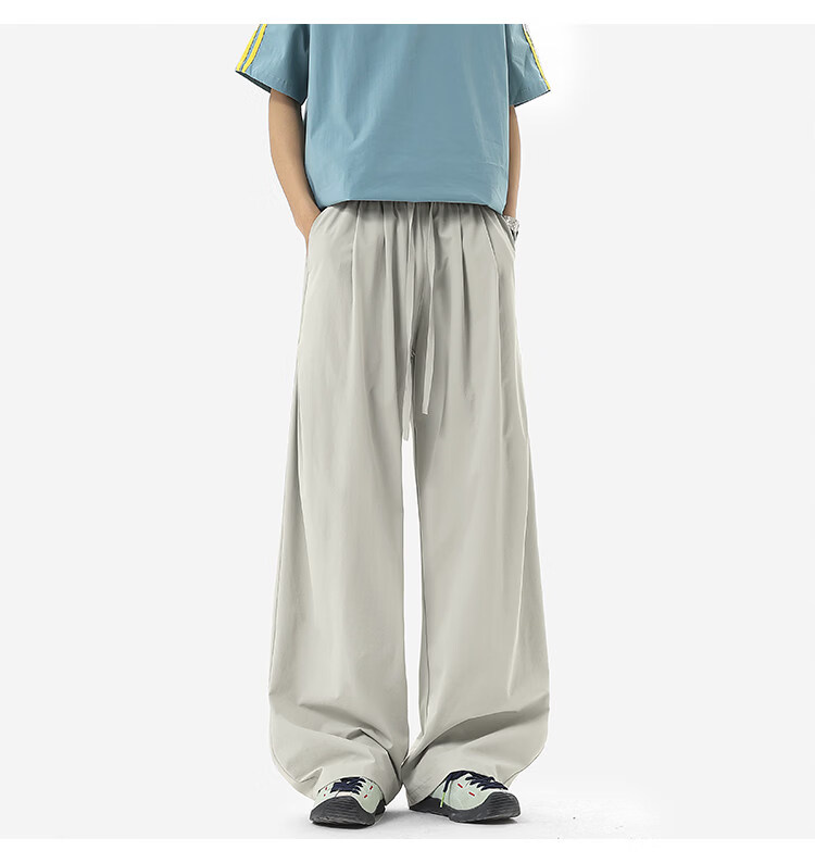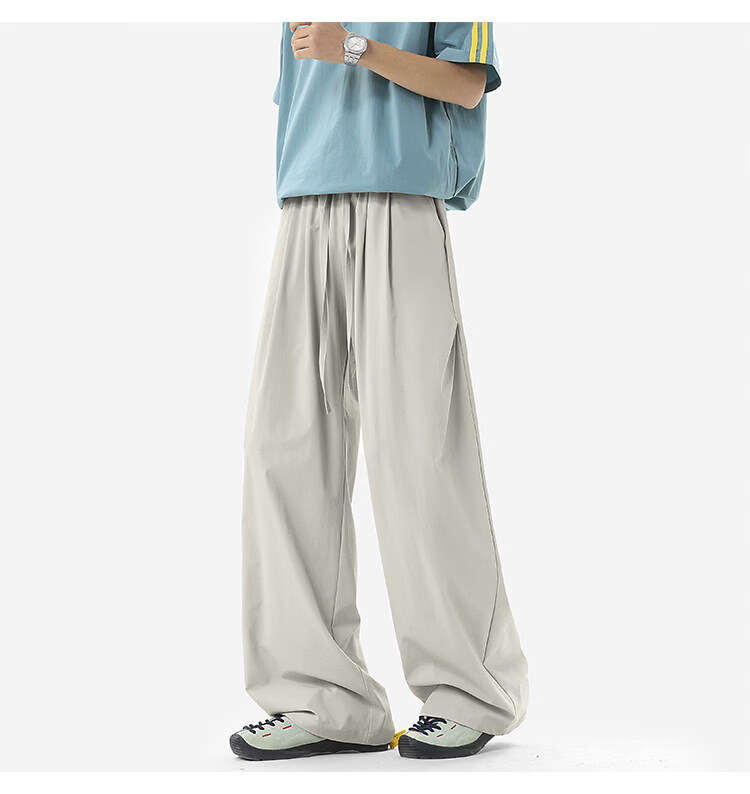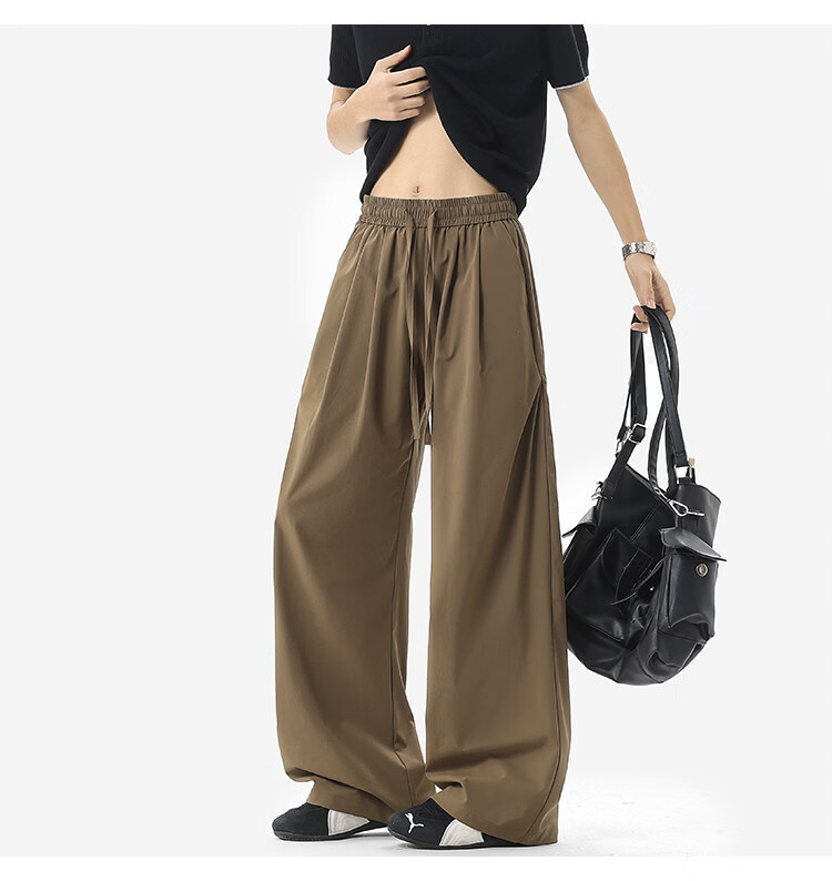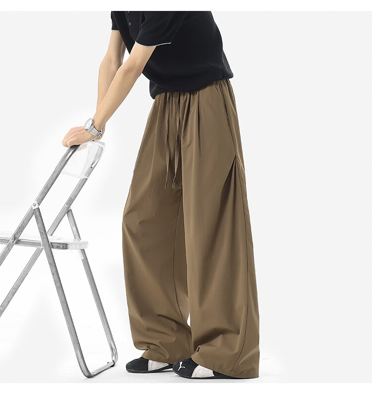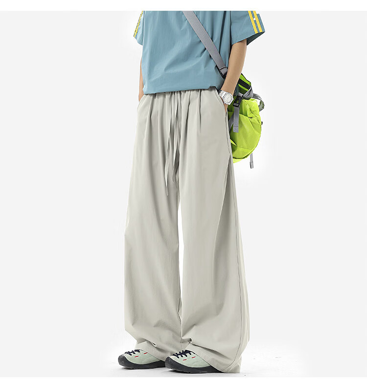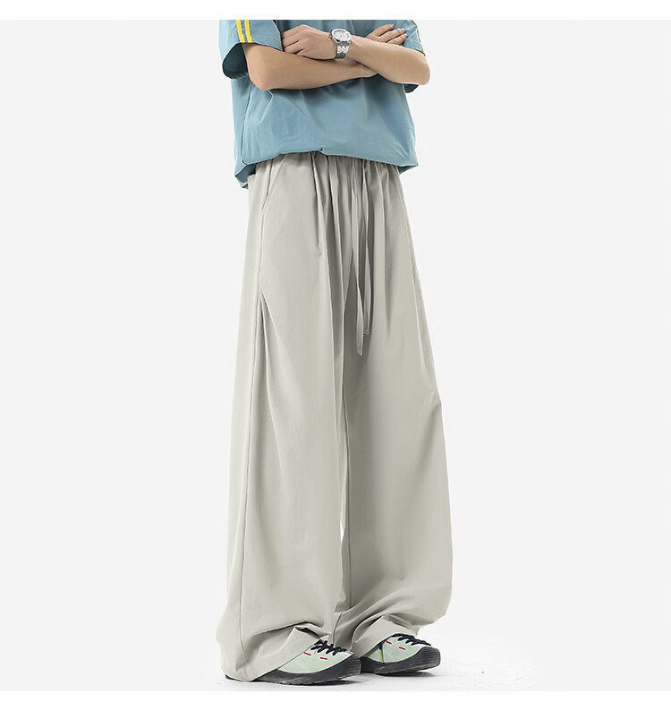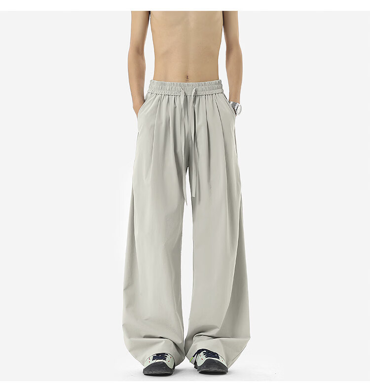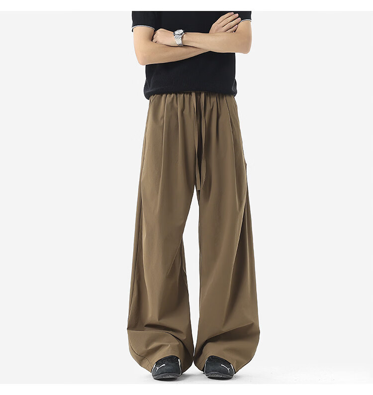 NEW OR MODE凉感冰丝休闲裤男夏季潮牌垂感抽绳长裤百搭设计感宽松阔腿直筒裤 黑色【高品质】 M 【建议90-110斤】