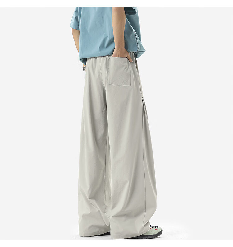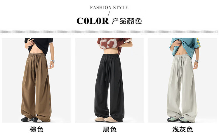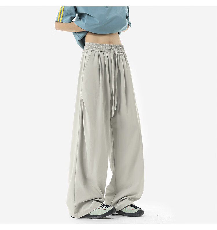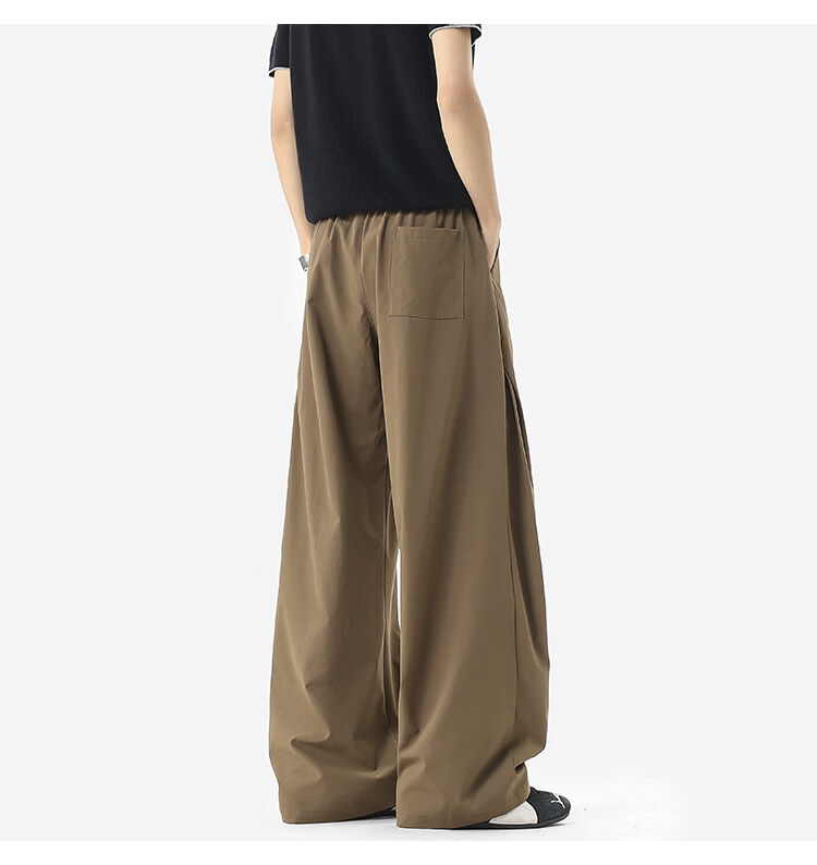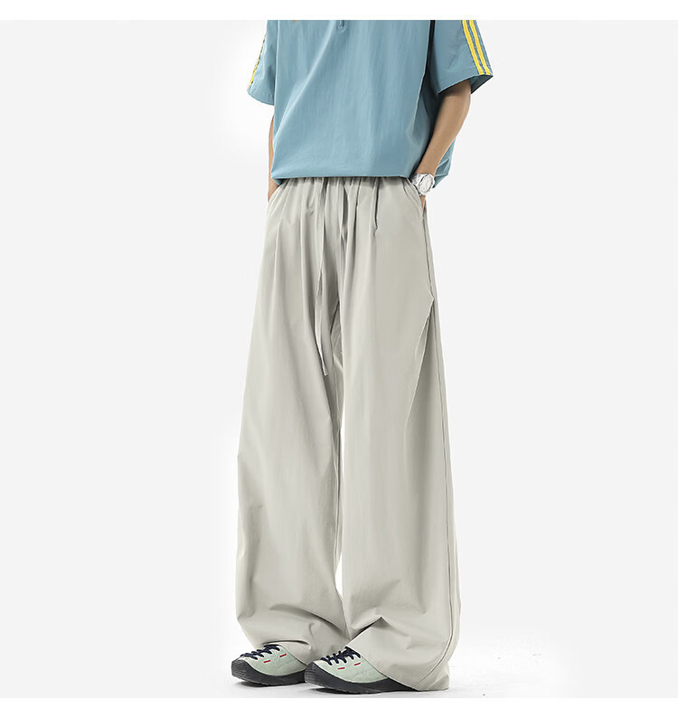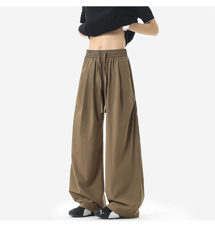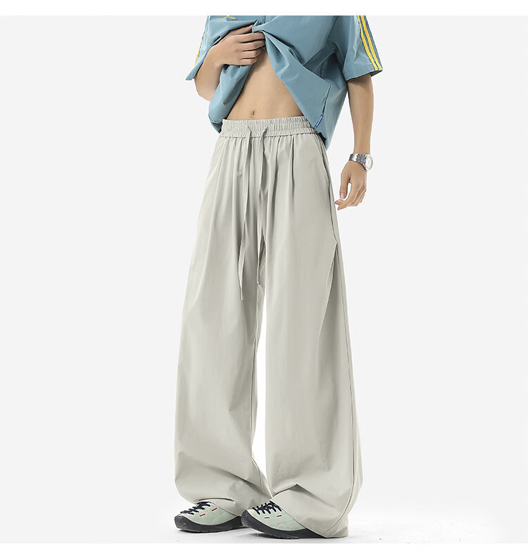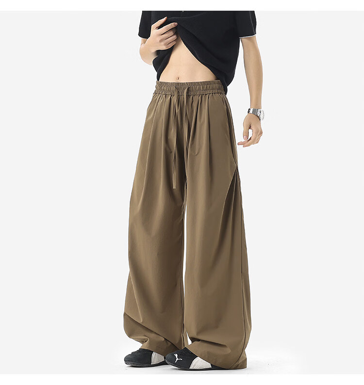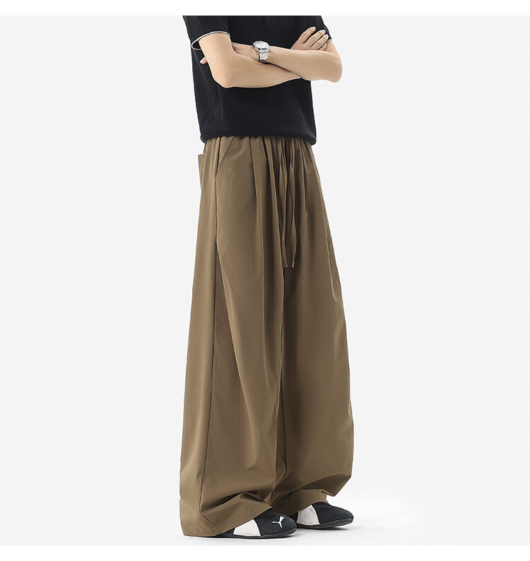 NEW OR MODE凉感冰丝休闲裤男夏季潮牌垂感抽绳长裤百搭设计感宽松阔腿直筒裤 黑色【高品质】 M 【建议90-110斤】