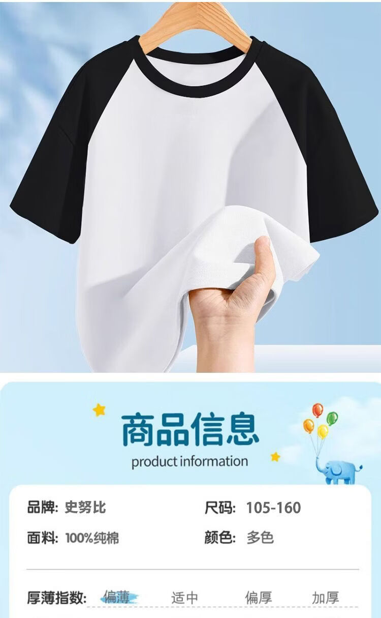 史努比(SNOOPY)女童拼接短袖儿童纯棉夏季新款上衣夏装女孩洋气T恤童装 拼接短袖/342大黑+422大粉+419大紫 160 适合体重40-45公斤