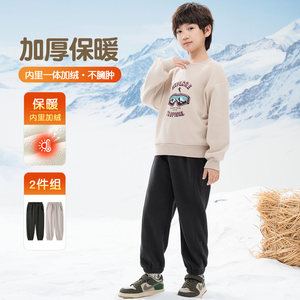 巴布豆男童加绒裤子秋冬款运动裤卫裤2025新款儿童休闲裤长裤子