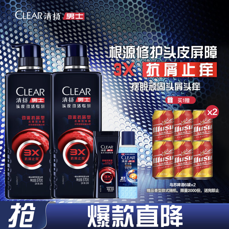 清扬男士去屑洗发水 抗屑止痒570gx2+试用装100gx2 京东自营开学季
