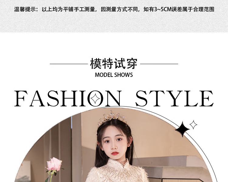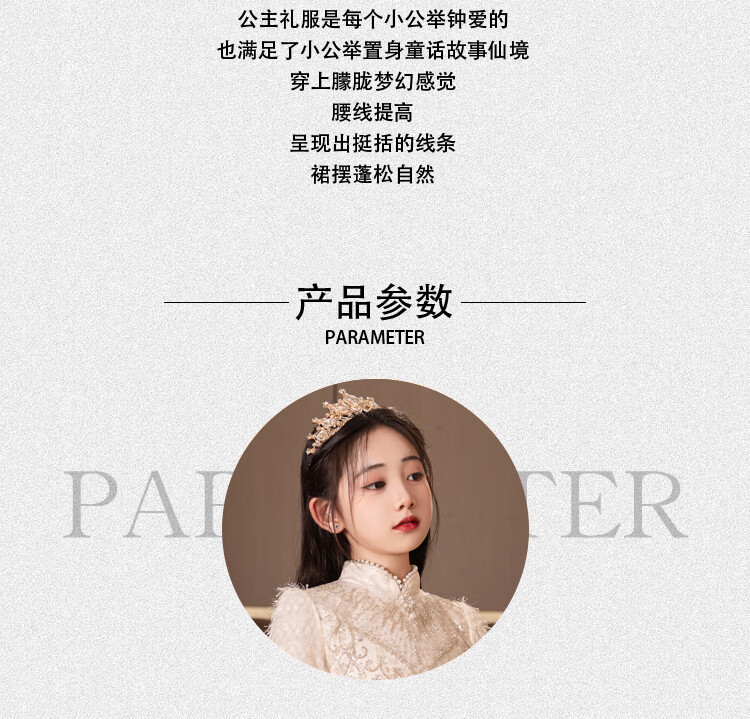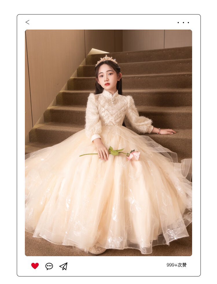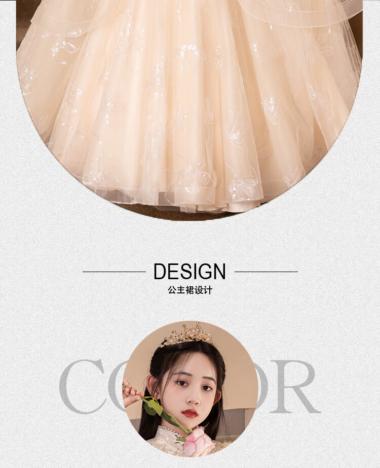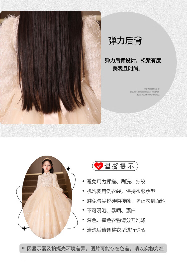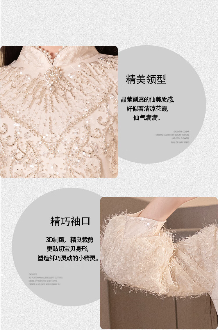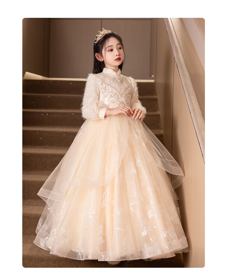 迪士尼(Disney)女童礼服主持人秋冬花童小女孩高端轻奢儿童生日公主裙钢琴出演服 1518长款香槟不加绒 关注送水晶皇冠 160 cm