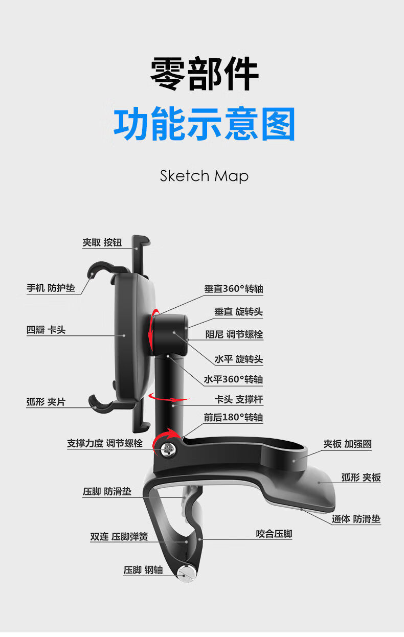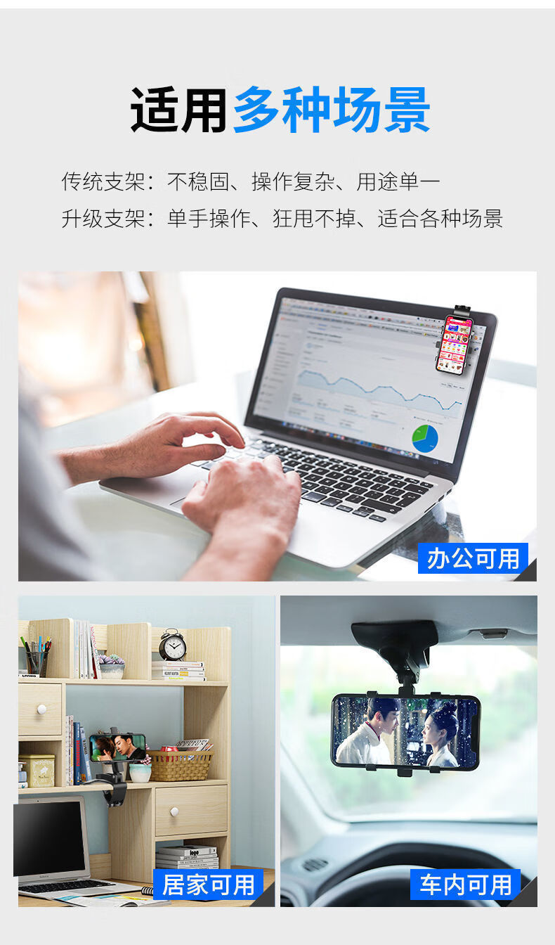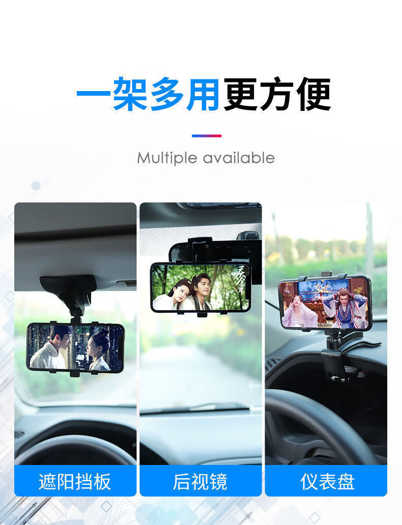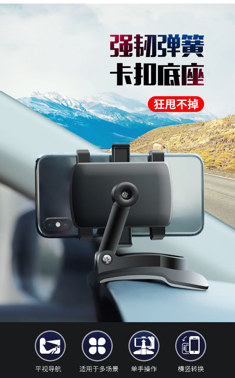 家用车载手机支架仪表台固定支架后视镜多功能通用导航支撑架 黑色